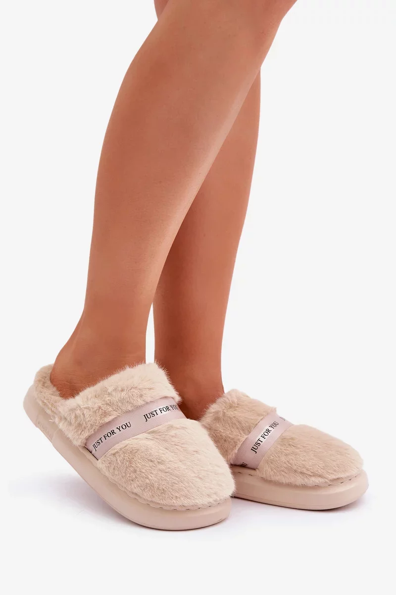 Futrzane Pantofle S Ozdobným Páskem Béžové Savalithea 38/39