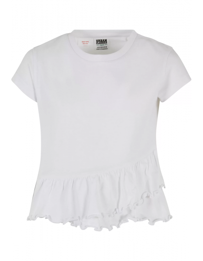 Tento charismatický top by neměl chybět v žádném šatníku. Horní díl nabízí osvědčený komfort košile a je vybaven klasickými rukávy a kulatým výstřihem. Díky širokému volánovému lemu v pase, který je asymetricky střižený, se tričko stane něčím výjimečným. V neposlední řadě je svršek celý vyroben z certifikované organické bavlny.