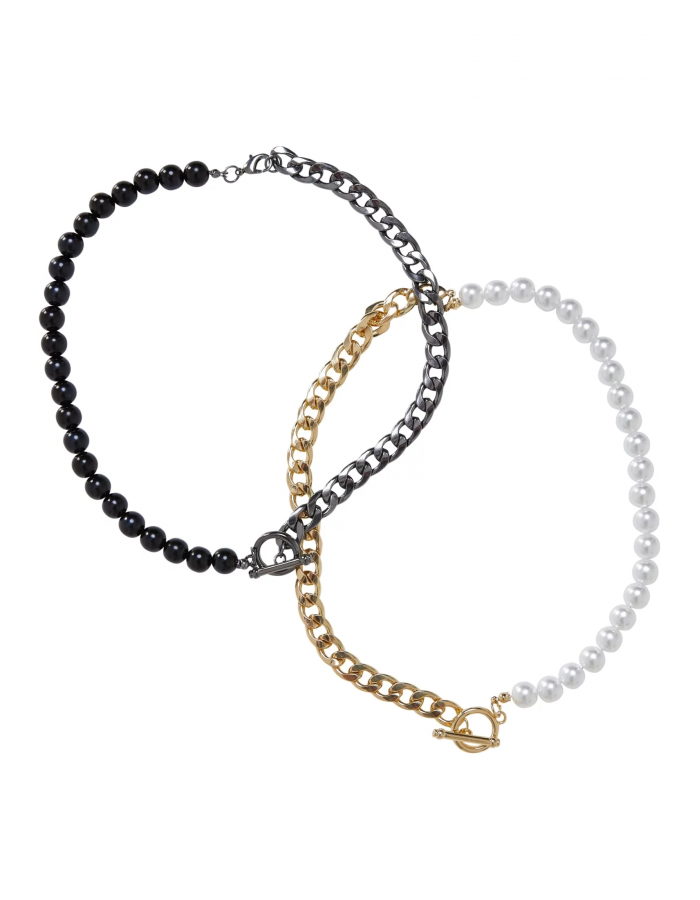 Sada dvojčat obsahuje dva výměnné řetízky na náhrdelníky se čtyřmi díly, které lze jednotlivě kombinovat. Různé barevné řetízky a perleťové prvky jsou spojeny snadno použitelnou přezkou a karabinou a vytvářejí vysoce kontrastní vzhled. Materiál soupravy náhrdelníku je železo a plast.