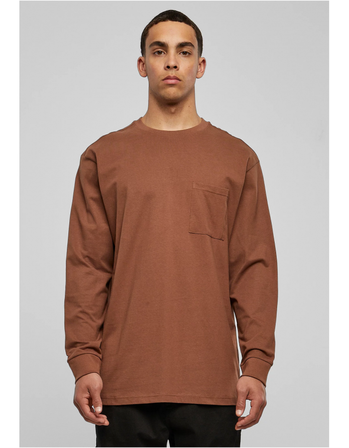 Jednoduché pánské dlouhé rukávy přesvědčí klidem a konzistentními detaily. Uprostřed designu stojí záplatovaná náprsní kapsa doplněná širokými žebrovanými manžetami na rukávech a žebrovaným výstřihem. K ležérnímu oversize střihu se spadlými rameny dokonale ladí těžká bavlněná látka.