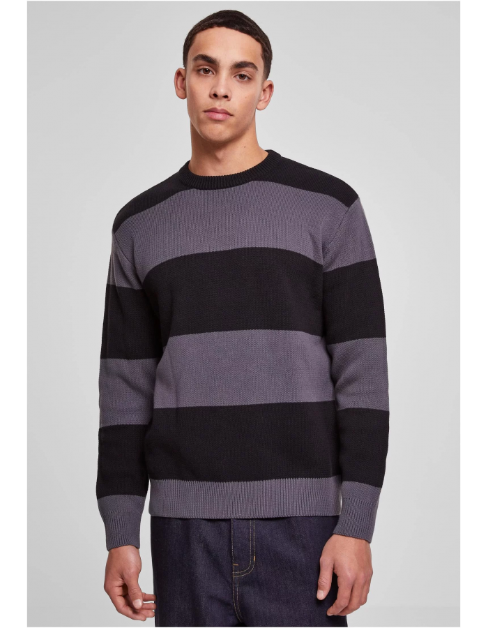 Tato dvoubarevná pánská mikina vyzařuje sebevědomí díky svému designu vodorovných blokových pruhů a vyváženému barevnému schématu. Navíc nabízí kulatý výstřih a široké manžety na rukávech a lemu. Silný úplet z bavlny je dalším detailem. Vzhled doplňuje oversized střih se spadlými rameny.