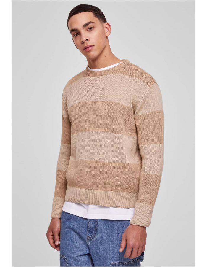 Tato dvoubarevná pánská mikina vyzařuje sebevědomí díky svému designu vodorovných blokových pruhů a vyváženému barevnému schématu. Navíc nabízí kulatý výstřih a široké manžety na rukávech a lemu. Silný úplet z bavlny je dalším detailem. Vzhled doplňuje oversized střih se spadlými rameny.