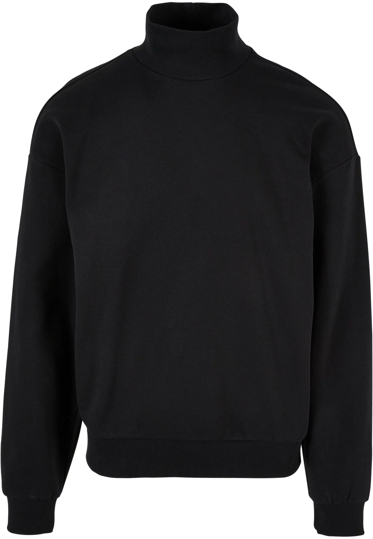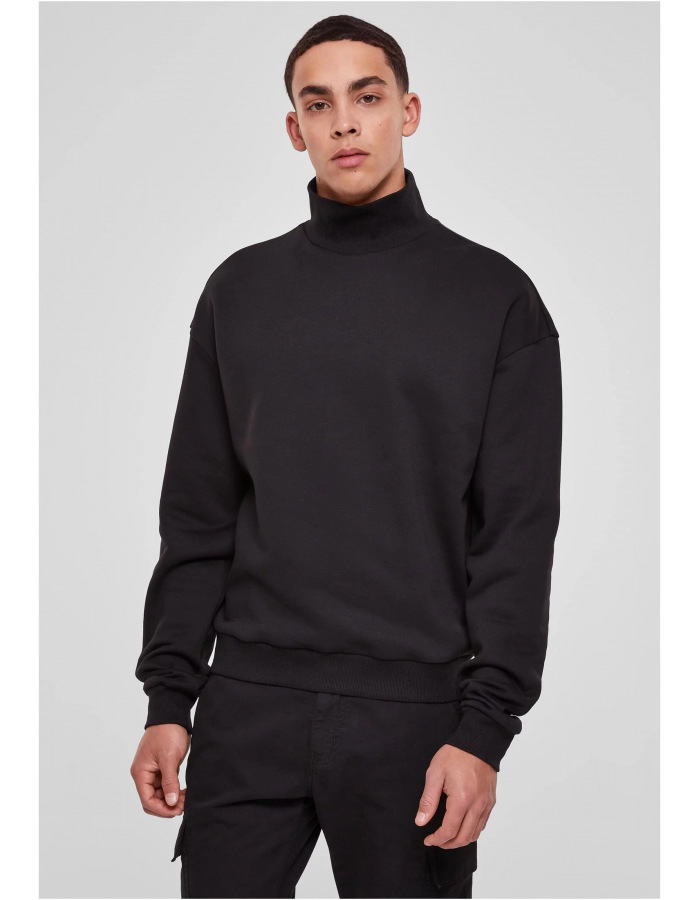 Pánský svetr s kulatým výstřihem nabízí jasný vzhled, který zahrnuje vysoký žebrovaný stojáček, oversize střih se spadlými rameny a sportovní žebrované manžety na rukávech a spodním lemu. Je vyrobena z česaného fleecu – hladké směsi polyester-bavlna.