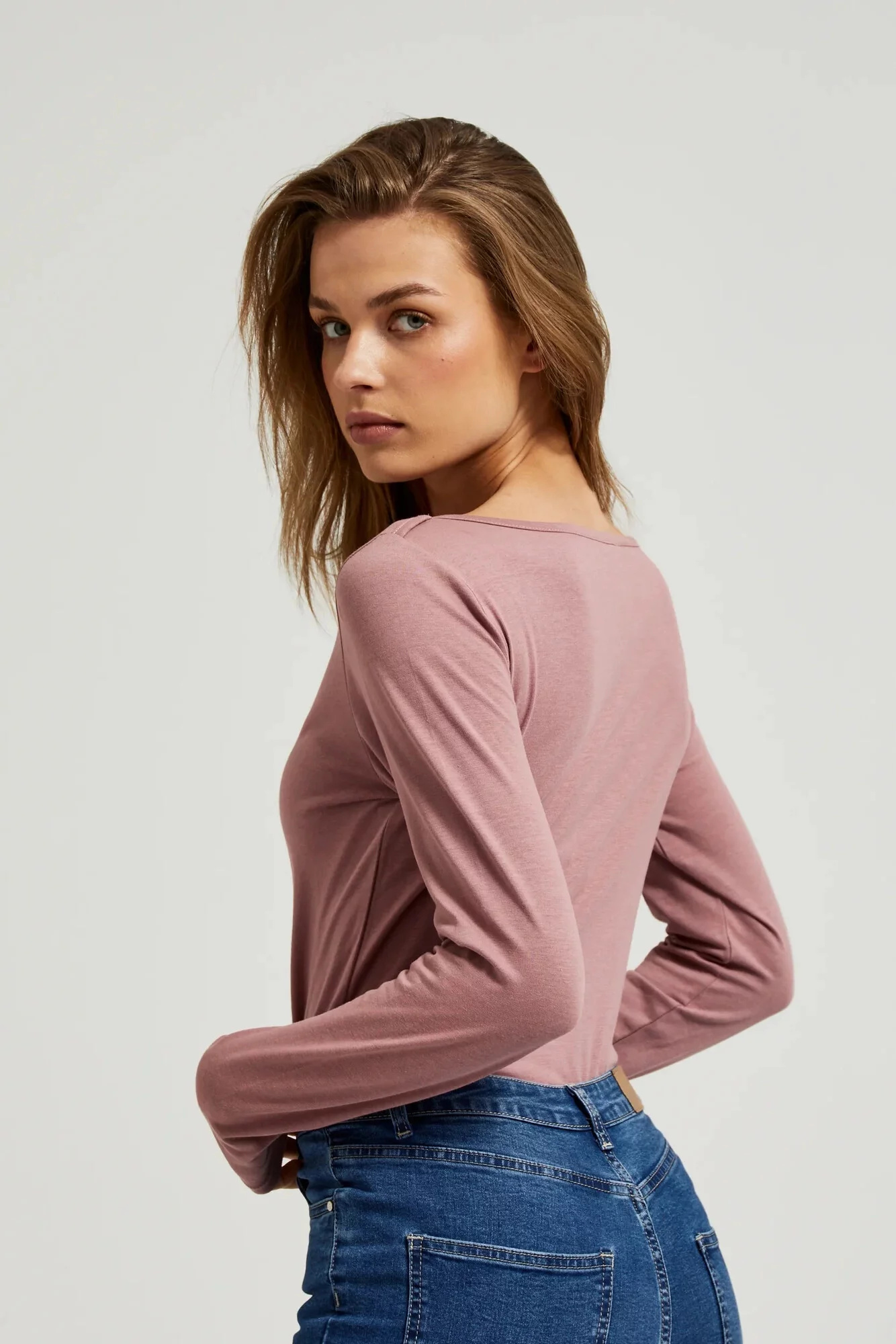 95% BAVLNA, 5% ELASTAN Halenka je ideální volbou pro každou ženu, která si cení pohodlí a stylu. Vyrobená z vysoce kvalitní bavlny, hladká na dotek, zajišťuje pohodlí při nošení po celý den. Dlouhý rukáv a přiléhavý střih zdůrazňují ženskou postavu, zatímco lodičkový výstřih dodává halence eleganci. Skvěle se hodí pro různé příležitosti, jak na každodenní nošení, tak na setkání s přáteli nebo romantickou večeři. Dokonale bude pasovat jak k sukni, tak k džínům, čímž vytvoří stylizaci jak na neformální výlety, tak na elegantnější setkání. Díky univerzální růžové barvě bez vzoru bude halenka ideálním doplňkem každého dámského šatníku.