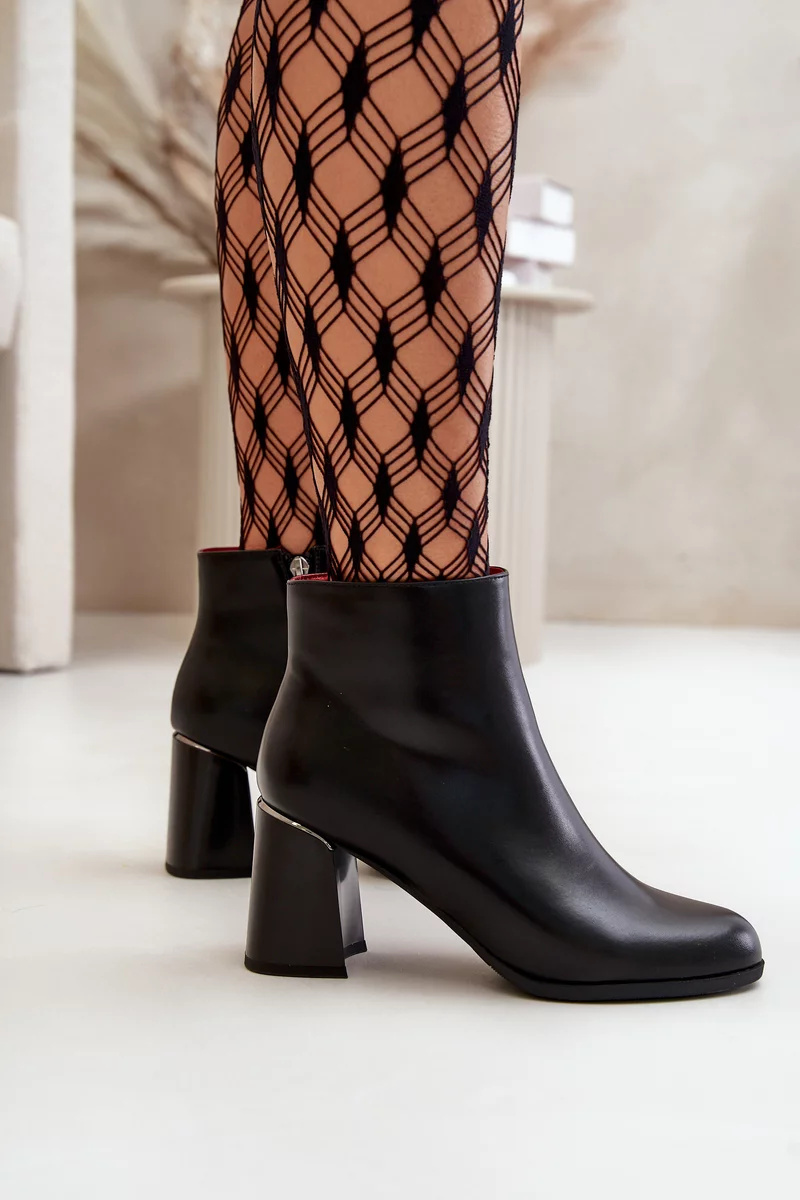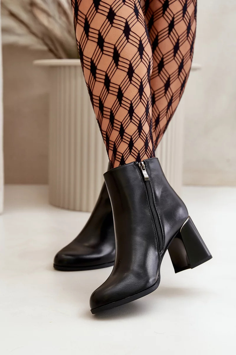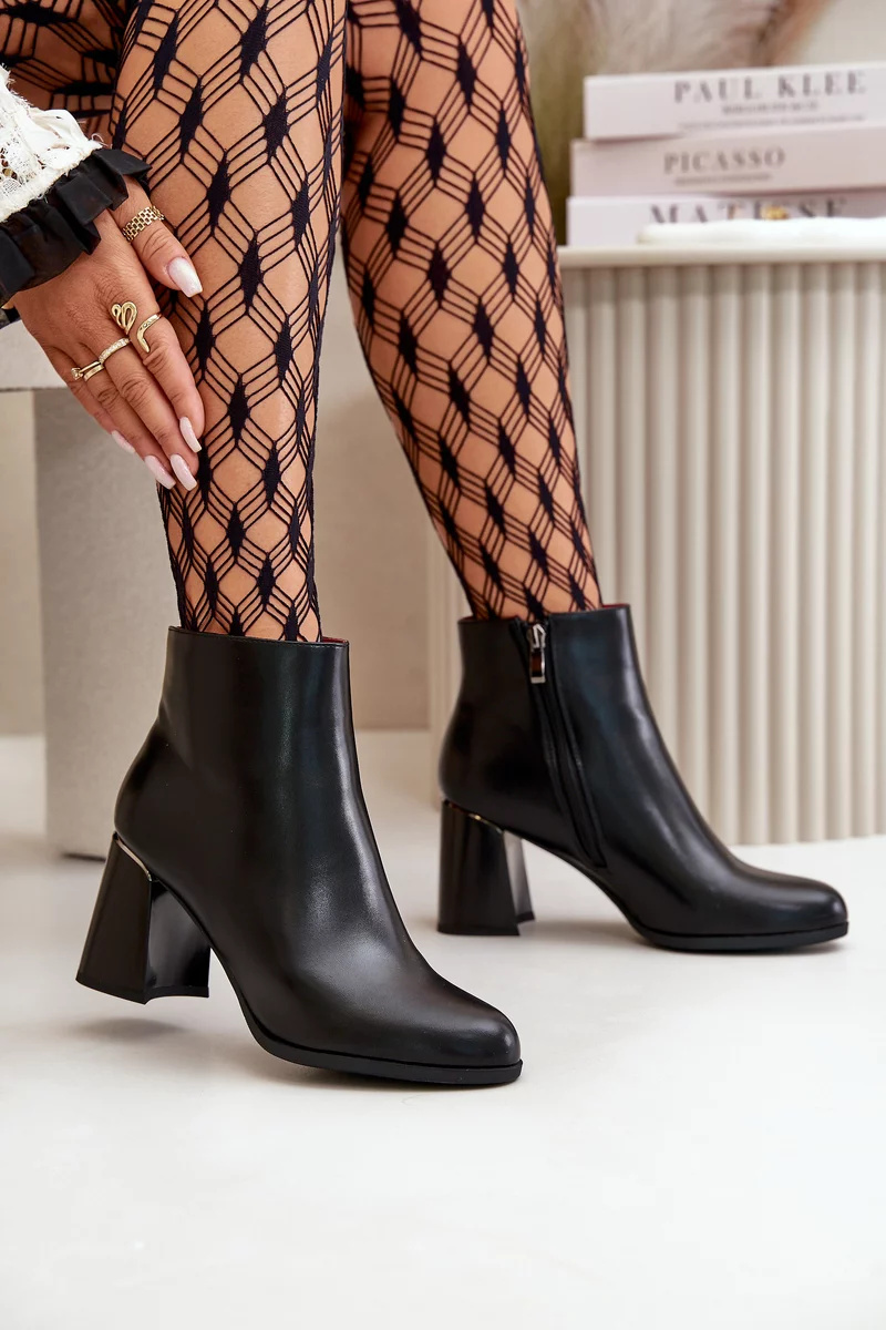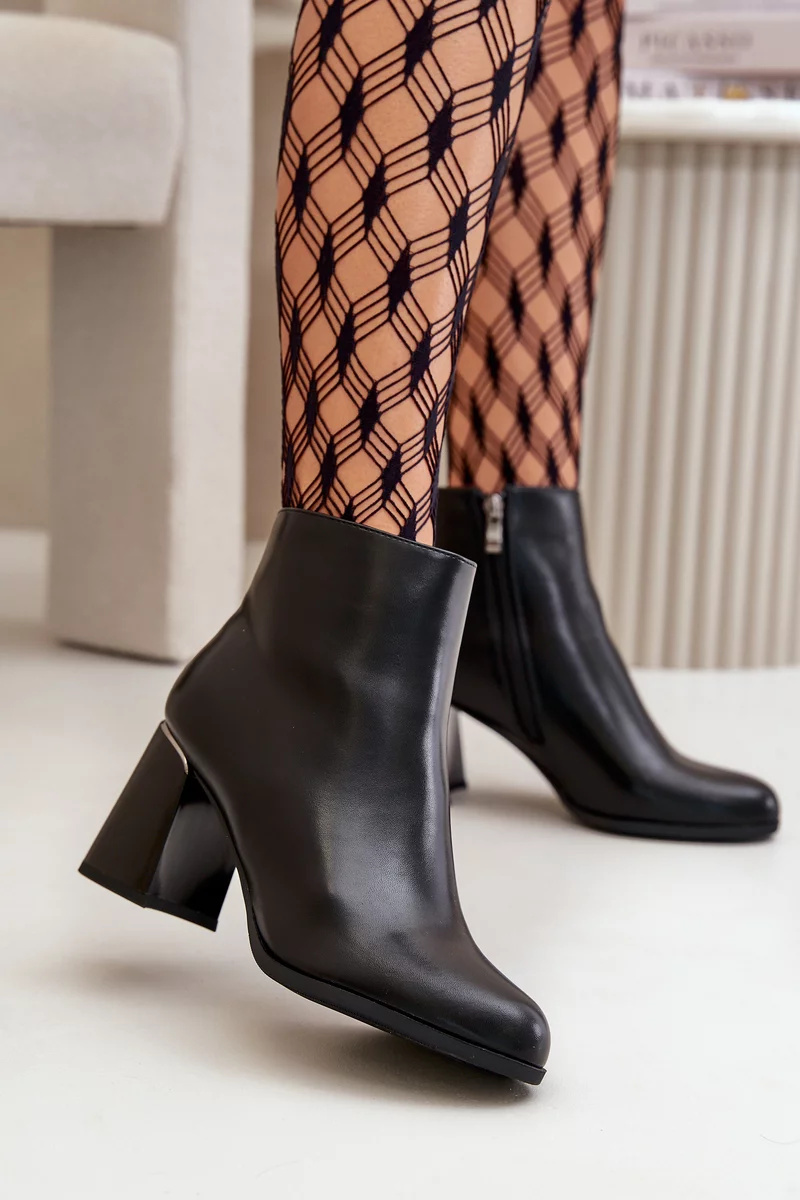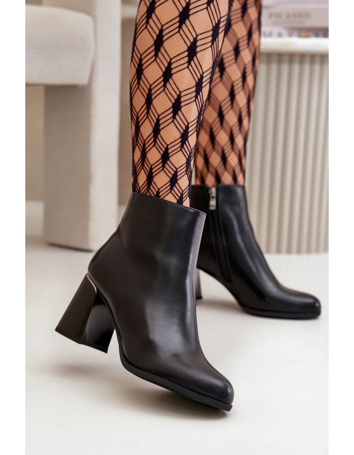 Dámské kotníkové boty vyrobené z eko kůže. Občas podpatek zajišťuje stabilitu a pohodlí při chůzi, zároveň přidává několik centimetrů výšky a zdůrazňuje postavu. Zapínání na zip zaručuje snadné obouvání a zouvání bot, což je zvláště praktické při každodenním používání. Vnitřek bot je zateplený příjemnou obuvnickou dekou, která chrání nohy před chladem, zajišťuje jim teplo a pohodlí i v nejchladnějších dnech. Při výběru velikosti se prosím řiďte tabulkou velikostí.