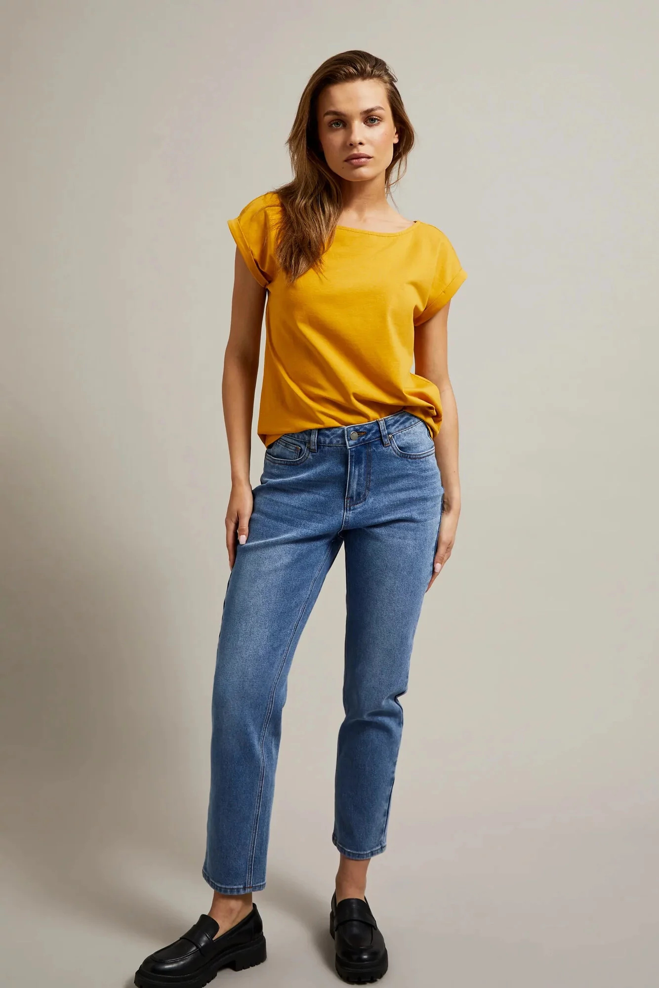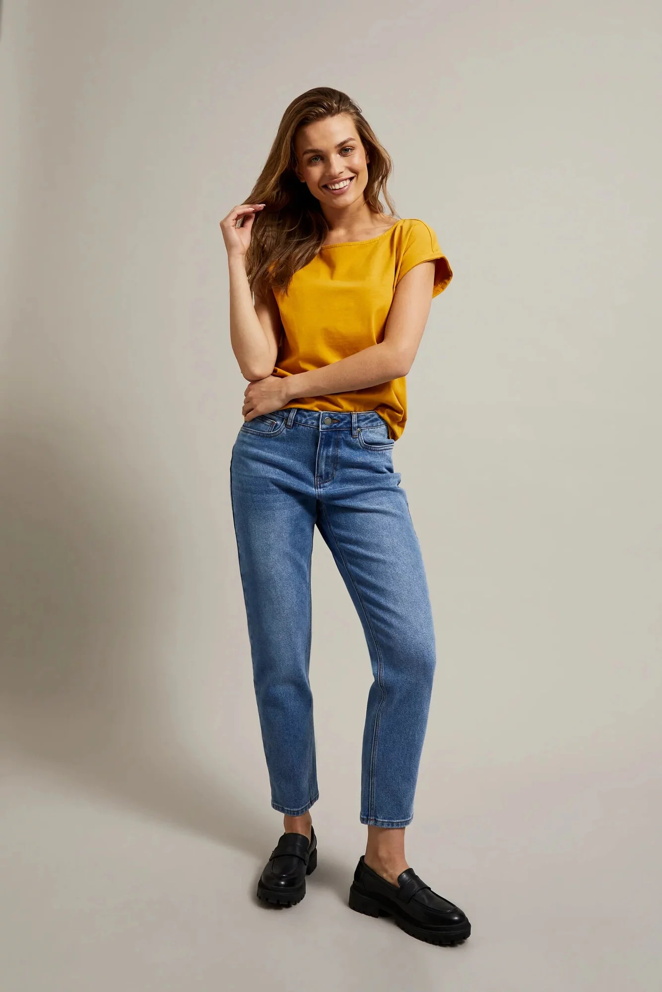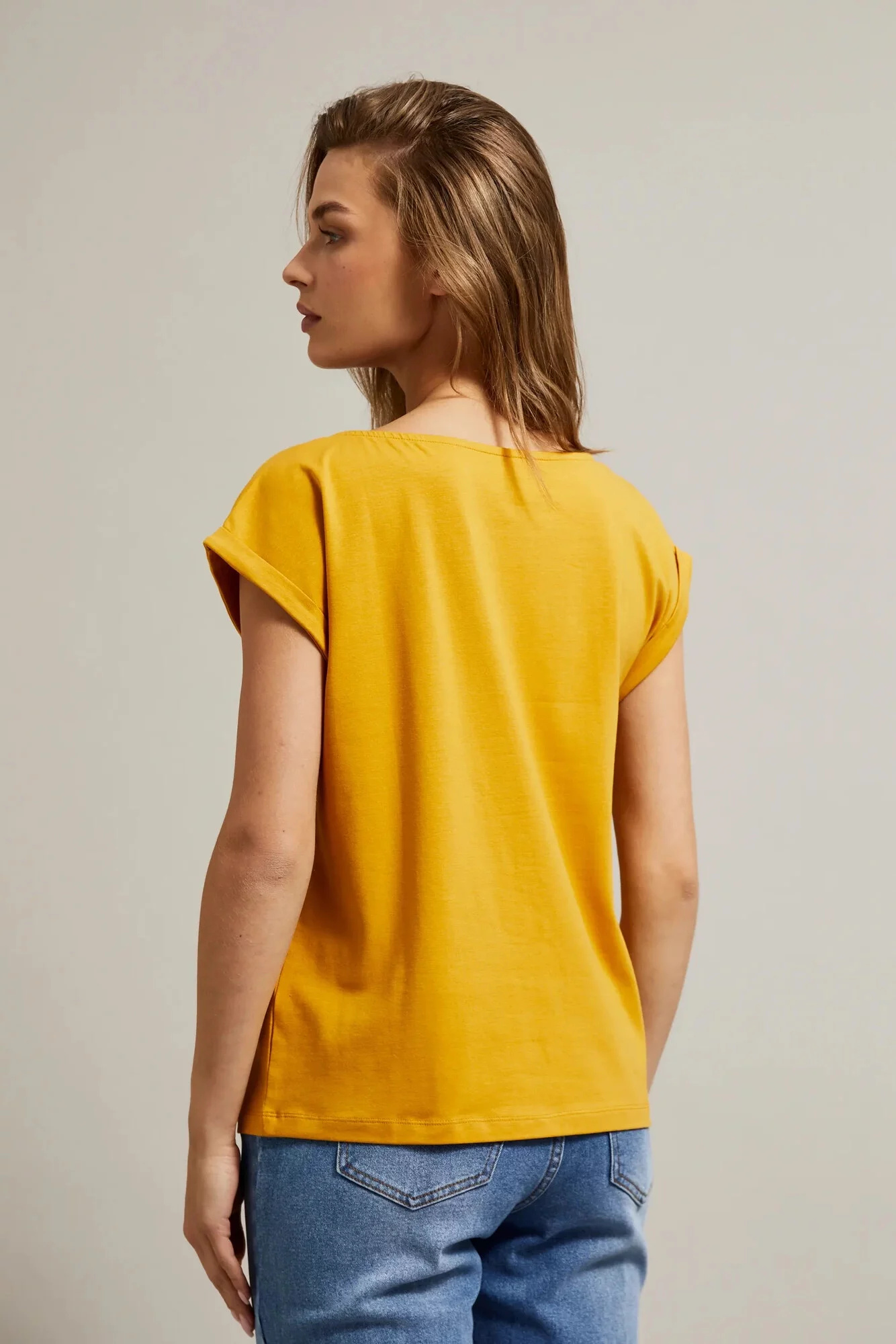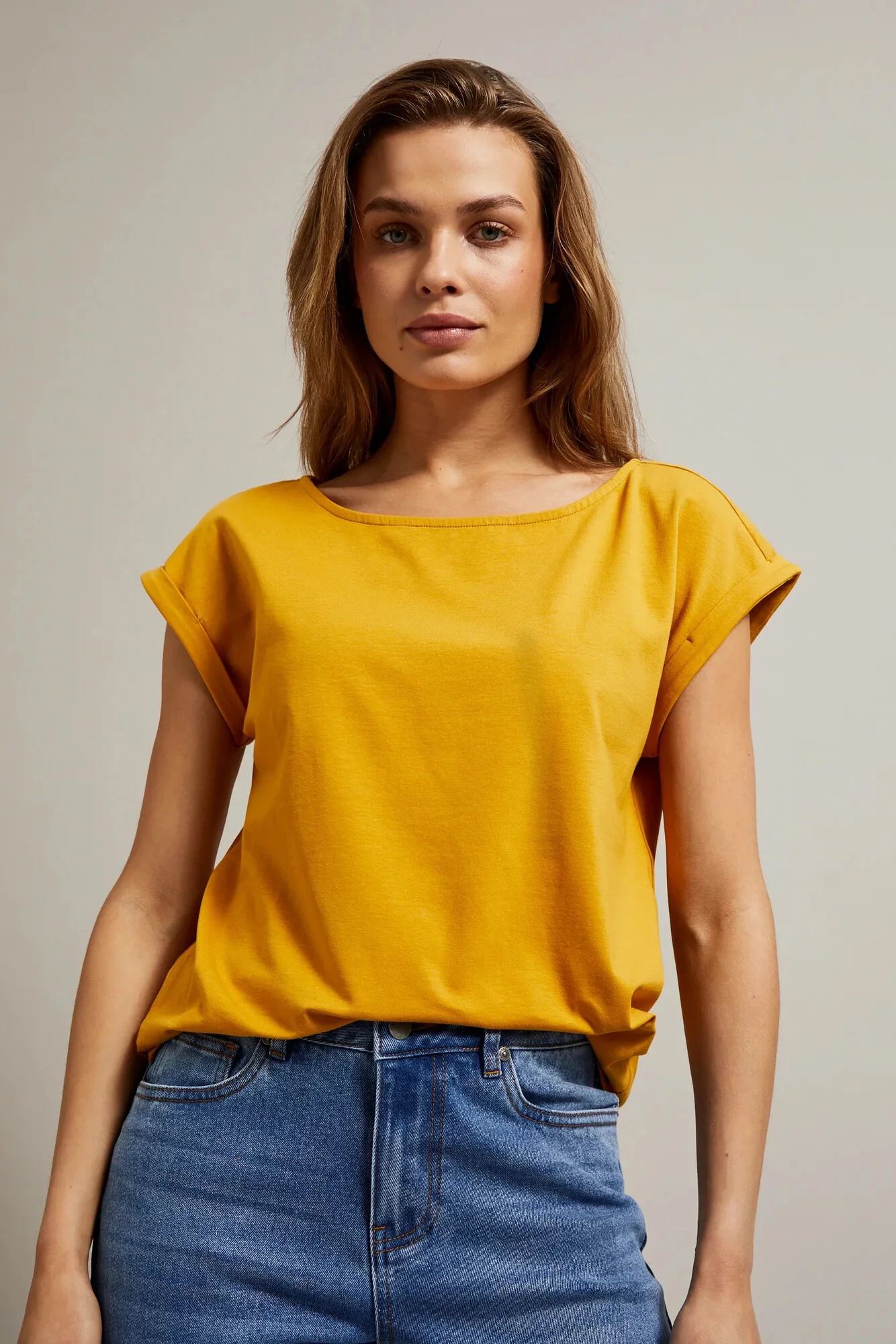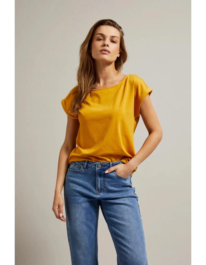 95%BAVLNA, 5%ELASTAN Halenka v hořčicové barvě je ideální volbou pro každou ženu, která si cení pohodlí a stylu. Vyrobená z vysoce kvalitní bavlny, hladká a příjemná na dotek. Model s kulatým výstřihem typu lodička, který jemně zdůrazňuje spuštěná ramena. Volný střih zajišťuje, že je halenka velmi pohodlná a ideální na teplé dny. Tato halenka se skvěle hodí pro mnoho různých příležitostí - jak na každodenní nošení, do práce, tak i na setkání s přáteli. Ideálně se hodí k džínům, sukni nebo šortkám, vytváří módní a ležérní vzhled. Díky univerzálnímu designu ji lze snadno přizpůsobit mnoha stylizacím. Ideální nabídka pro ženy, které si cení pohodlí a módního vzhledu - tento tričko musíš mít ve svém šatníku!