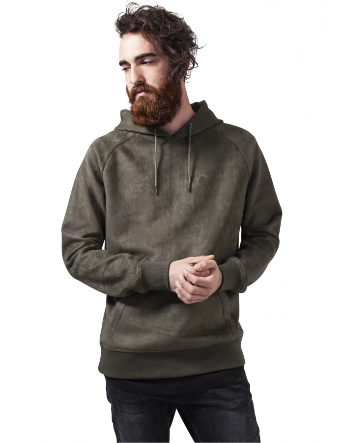 Semišové šik! Mikina s kapucí z imitace semiše od URBAN CLASSICS v módním veluru z měkkého materiálu má raglánové rukávy a manžety na rukávech a spodním lemu.