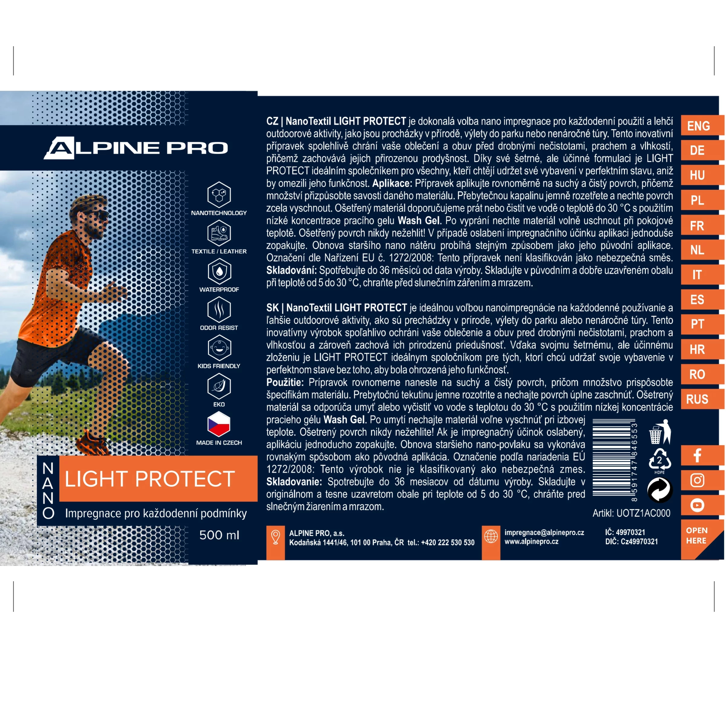 NanoTextil LIGHT PROTECT je ideální pro každodenní použití a lehké outdoorové aktivity, jako jsou procházky v přírodě, výlety do parku nebo nenáročné túry. Nano impregnace Light chrání vaše oblečení a obuv před drobnými nečistotami, prachem a vlhkostí, aniž by ztrácely svou prodyšnost. Díky tomu zůstává vaše vybavení lehké, pohodlné a funkční, což oceníte při každodenním nošení i při nenáročných výletech. Navíc je tato varianta skvělou volbou pro ty, kteří hledají jednoduché a efektivní řešení pro ochranu svého oblečení a obuvi. Účinnost ochranné nano vrstvy zůstává aktivní až po dobu 5 praní nebo při běžném používání až 3 měsíců. Celková životnost této speciální nano vrstvy je přímo závislá na míře mechanické zátěže, které je ošetřený materiál vystaven.