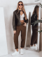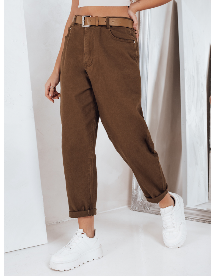 Materiał z przewagą bawełny zapewnia dobrą oddychalność i naturalne odczucie podczas noszenia. Zwężana nogawka i lekko luźniejsza konstrukcja w biodrach nadają sylwetce bardziej zrelaksowany, ale nadal uporządkowany charakter. Brązowy odcień dobrze współgra z bielą, beżem, czernią lub odcieniami ziemi, dzięki czemu spodnie z łatwością dopasujesz do jesiennych i wiosennych zestawów.