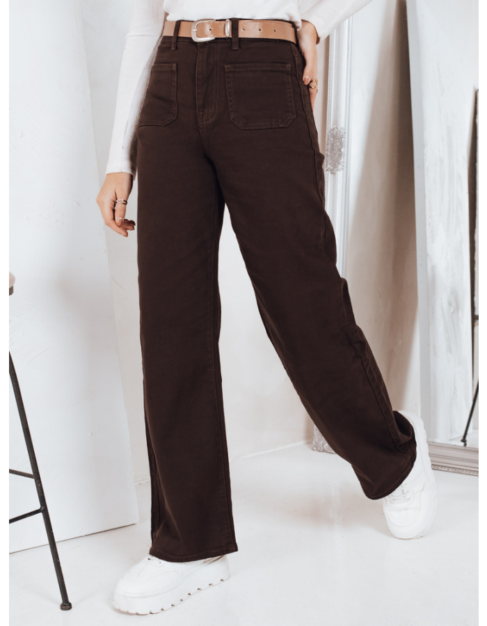 Materiał z przewagą bawełny zapewnia dobrą przewiewność i naturalne odczucie, a poliester i elastan poprawiają elastyczność oraz odporność na zagniecenia. Szeroka nogawka w klasycznym brązowym odcieniu sprawia, że model świetnie wpisuje się w styl codzienny, streetwearowy i casualowy. Spodnie można łączyć z dopasowanymi topami, t-shirtami lub krótkimi swetrami, tworząc uniwersalne zestawy na wiele okazji.