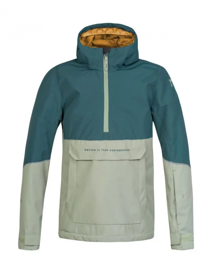 Lyžařská bunda s membránou Resstex s vodním sloupcem i prodyšností v hodnotách 10 000. Pohodlný střih bundy typu anorak má prostornou přední kapsu s klopou na suchý zip a v ní dvě integrované 2 hlavní kapsy na zip. Bunda má sněhový límec v pase a anatomicky tvarované rukávy zakončené stahováním patkou na suchý zip. Rukávy mají i vnitřní elastickou manžetu, která zamezuje vniknutí sněhu a zároveň má funkci termoregulační. Kvalitní izolace Duratherm Classic zaručuje optimální funkčnost a dostatečný tepelný komfort. Svrchní vodoodpudivá úprava DWR zajistí nenasákavost materiálu. Bunda má boční rozepínání na pravé straně, dole zakončené na patent a hlavní voděodolný půl zip zakončený do límce. Kompletně podlepené švy, regulovatelný dolní lem a bezpečnostní reflexní prvky musí být. Předurčená pro lyžování, vhodná samozřejmě i pro jiné zimní aktivity.