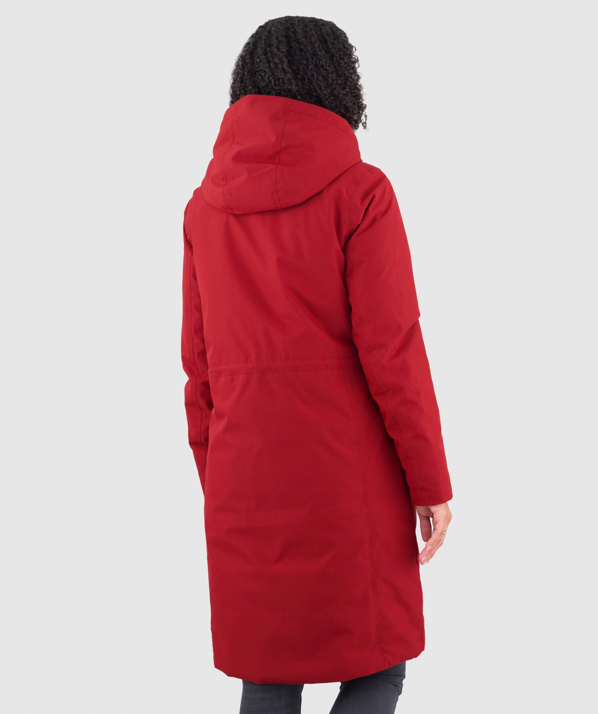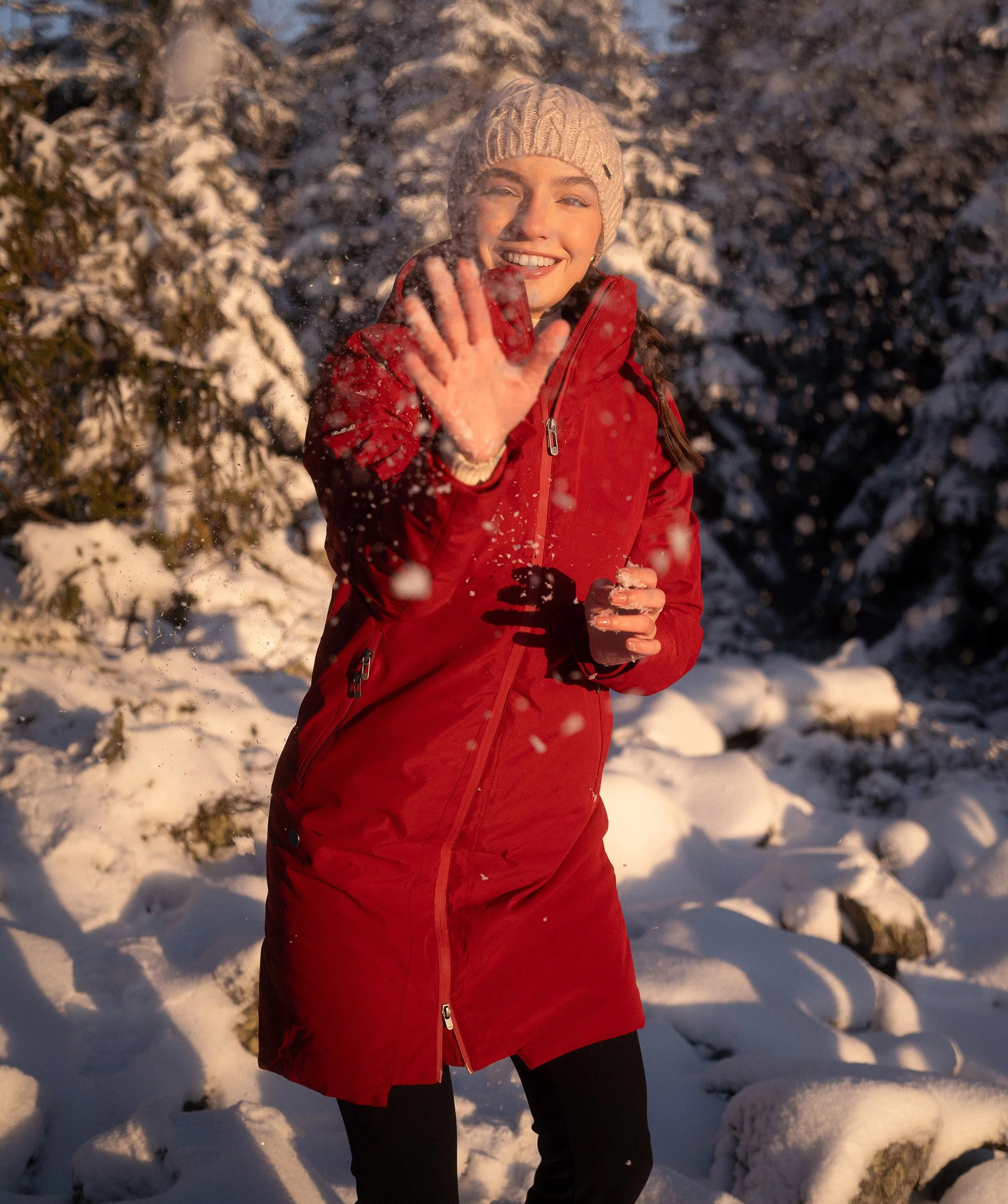 Hodně dlouhý, hodně teplý, hodně obdivovaný všude tam, kam si v něm vyrazíte. Pokud to bude do kavárny, posaďte se raději tak, ať vidíte na věšák. Ta paní, co ji přes výlohu uvidíte utíkat směrem k nádraží v úplně stejném kabátě, totiž dost možná nesprintuje kvůli autobusu. - pružný materiál bez příměsi elastanu, tedy recyklovatelný - funkční zimní kabát z odolného materiálu s podšívkou a zateplením ze 100% recyklovaného polyesteru - membrána s vodním sloupcem 10 000 mm a paropropustností 10 000 g/m2/24 hod. - ekologická vodoodpudivá povrchová úprava DWR PFC Free - unikátní konstrukce samostatného vysokého límce a nastavitelné kapuce - skvěle padnoucí střih díky stahování v pase - voděodolné zipy SAB s hlavním zipem dvoucestným a předními kapsami se dvěma jezdci - rukávy zakončené vnitřním strečovým úpletem pro vyšší tepelný komfort