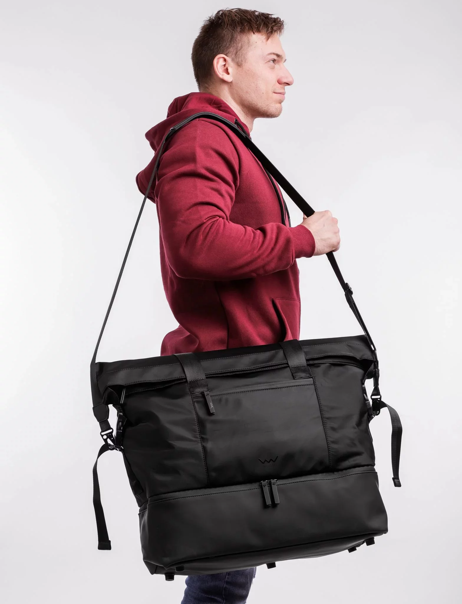 Ať už se chystáš do fitka, na víkendový výlet nebo na palubu letadla, tahle cestovní taška je tvůj spolehlivý společník. S novou verzí pogumovaného materiálu nabízí ochranu tvých věcí před deštěm. Dvě velké přední kapsy a rozšířené rozepínání zipu usnadní přístup ke všemu, co v ní budeš nosit.