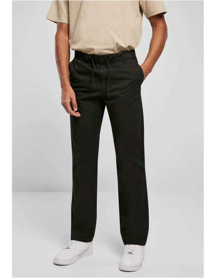 Pánské látkové kalhoty spojují ležérní styl nošení potu s přitažlivostí klasických ležérních kalhot. Jsou vybaveny širokým elastickým pasem se stahovací šňůrkou a nabízejí boční kapsy, integrované zadní kapsy i rovné nohavice, které jsou po stranách mírně rozparkované. Kalhoty mají regular střih a jsou vyrobeny z kvalitní keprové tkaniny s malým množstvím elastanu, takže nabízejí optimální pohodlí při nošení.