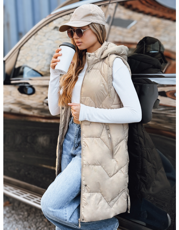 Kamizelka została wykonana z trwałego poliestru, który dobrze chroni przed wiatrem i zapewnia lekkość. Dzięki funkcjonalnym detalom, takim jak odpinany kaptur, ściągacz na dole i praktyczne kieszenie, sprawdzi się zarówno na spacerze, jak i w codziennych miejskich zestawach. Neutralny odcień ułatwia zestawianie jej z różnymi elementami garderoby.