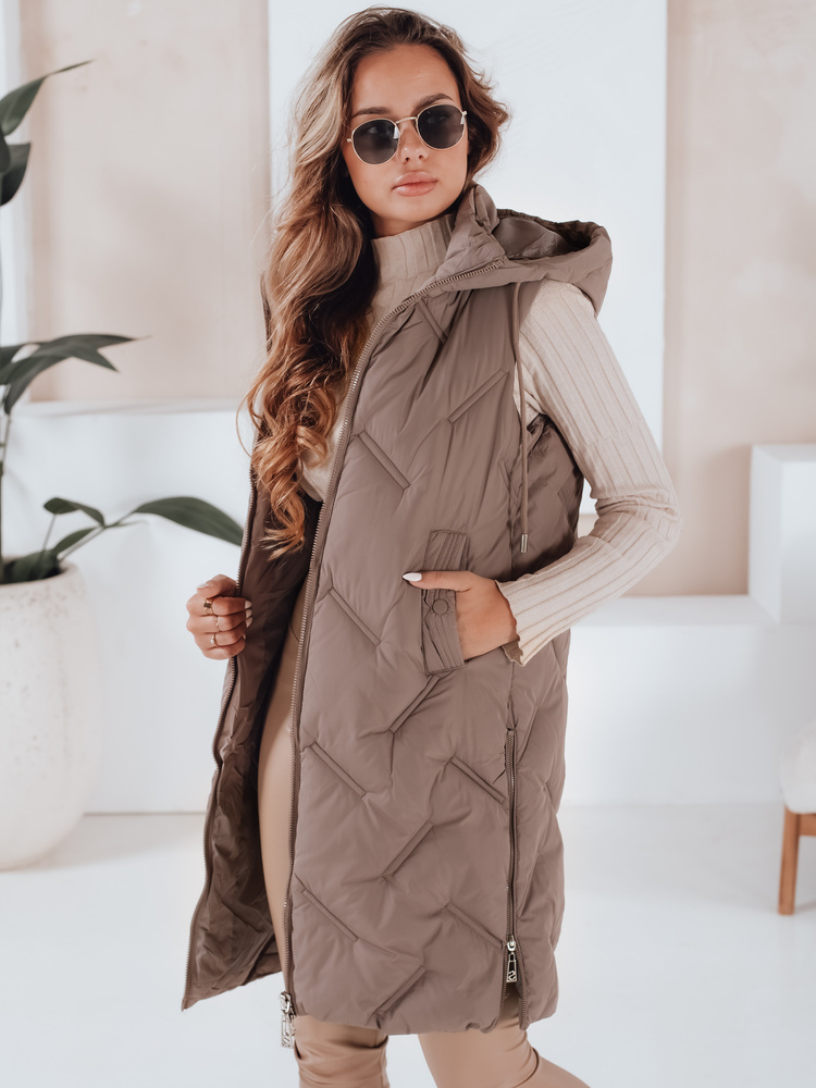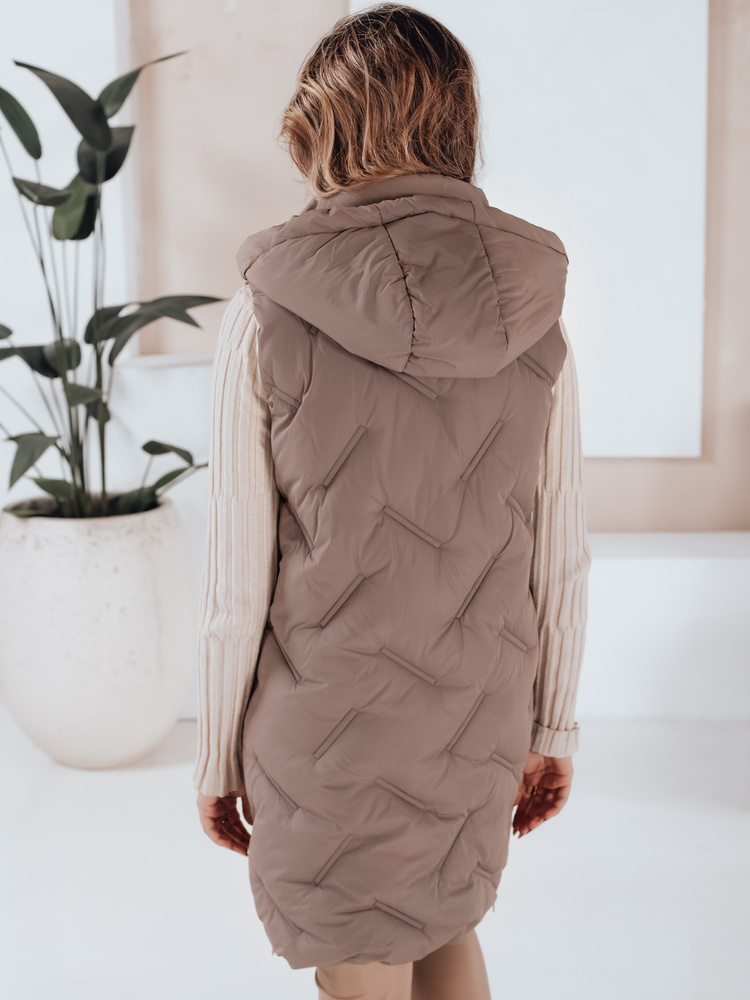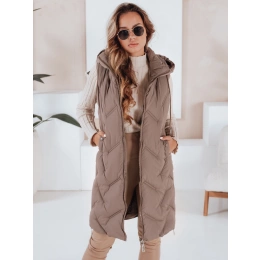 Długa kamizelka pikowana damska TY5100 ciemnobeżowa