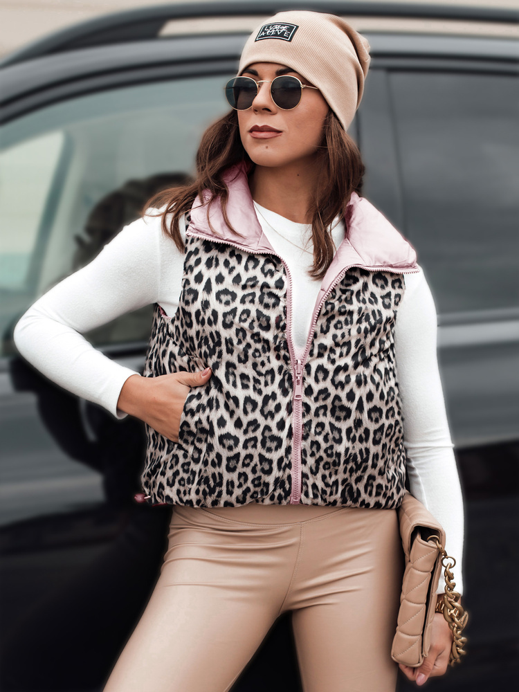 Kamizelka damska krótka pikowana dwustronna LEOVELLA ty5492 różowa
