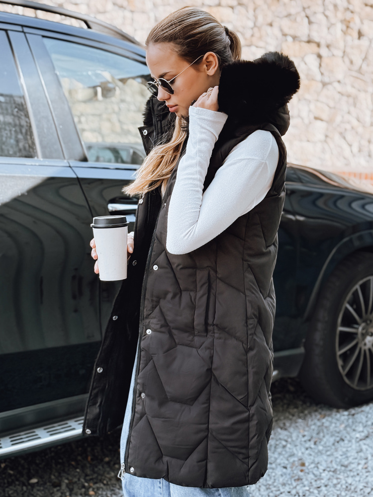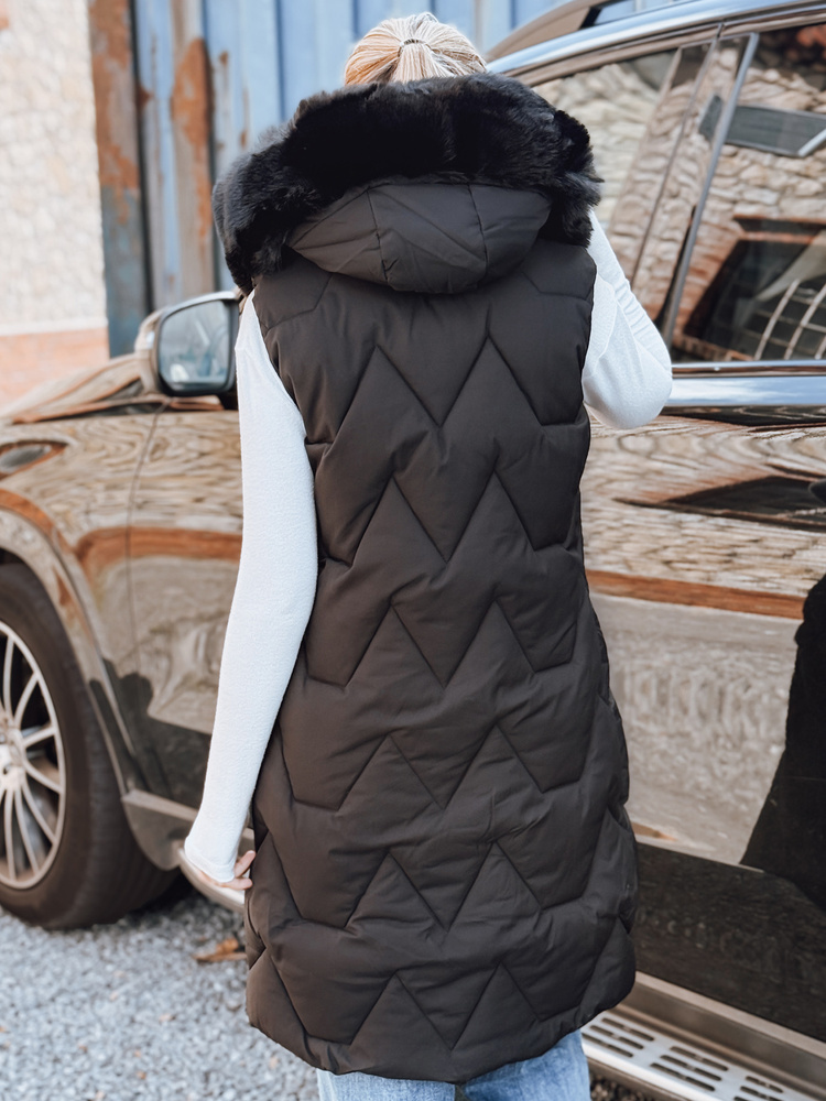 Stylowa kamizelka o wydłużonym kroju to praktyczne uzupełnienie garderoby na chłodniejsze dni. Pikowana powierzchnia nadaje jej modny charakter, a dodatkowe futerko przy kapturze dodaje całości elegancji i przytulnego akcentu. Dzięki uniwersalnej formie łatwo dopasuje się zarówno do casualowych, jak i bardziej sportowych stylizacji.