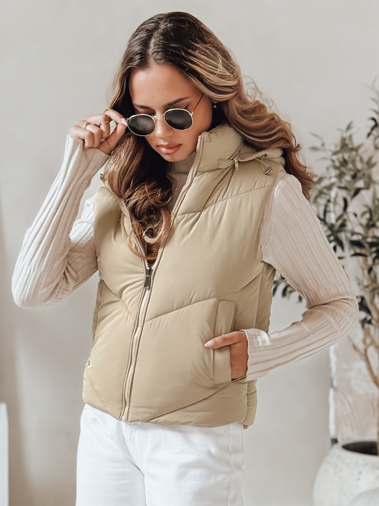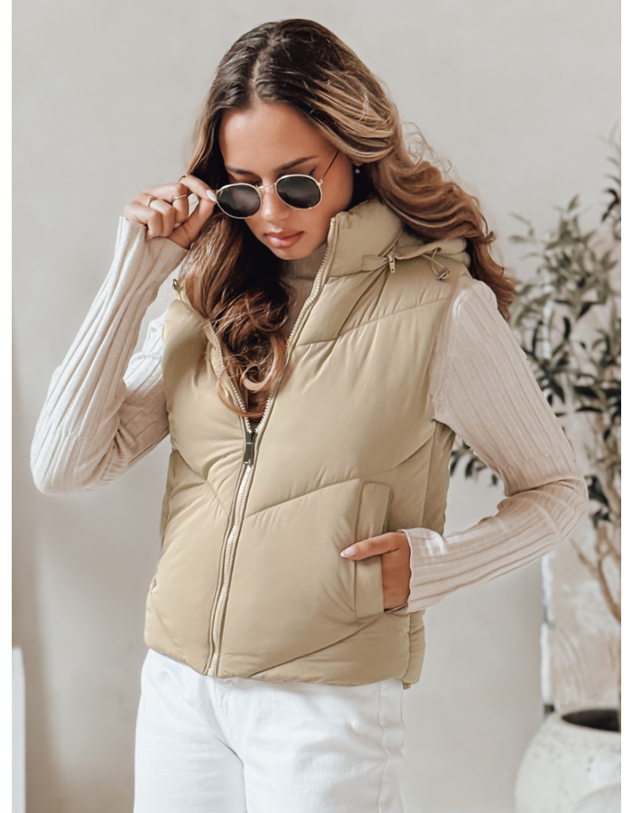 Kamizelka damska pikowana LIKEHUGS beżowa Dstreet TY4979 S
