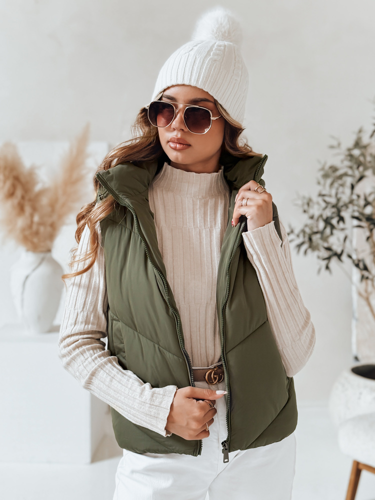 Pikowana kamizelka damska z kapturem to must-have na chłodniejsze dni wiosny. Świetnie dopasowuje się do sylwetki dzięki lekkiej, niekrępującej konstrukcji. Zamek na całej długości i praktyczne kieszenie zapewniają funkcjonalność, a modny krój dodaje stylu codziennym stylizacjom.