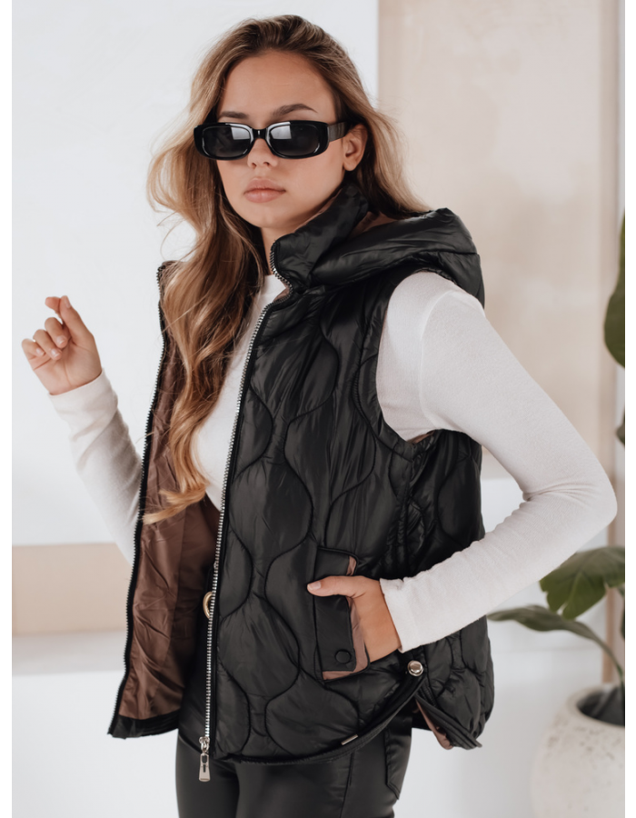 Pikowana kamizelka damska z odpinanym kapturem to świetna opcja na przejściowy sezon. Lekka, ale dobrze izolująca, sprawdzi się zarówno na spacery, jak i w codziennych stylizacjach. Praktyczne kieszenie i modne pikowanie dodają jej miejskiego szyku. Idealna do noszenia z golfem lub bluzą.