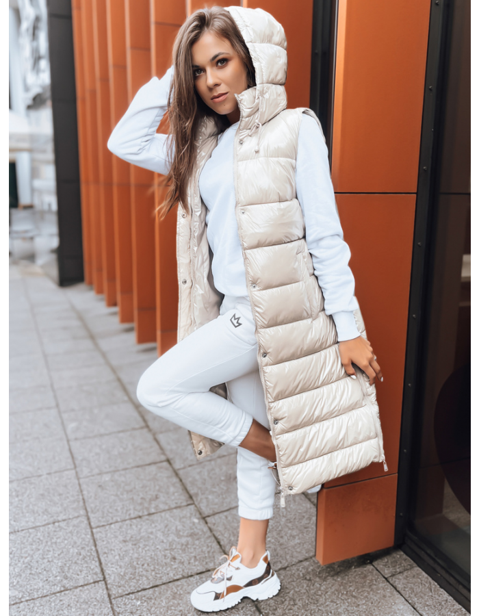 Pikowana kamizelka o wydłużonym fasonie uzupełnia stylizacje w chłodniejsze dni, zapewniając dodatkową warstwę komfortu bez ograniczania swobody ruchów. Połyskujący materiał nadaje nowoczesny charakter, a pionowe pikowanie porządkuje sylwetkę. Kaptur zwiększa funkcjonalność podczas zmiennej pogody. Model sprawdza się zarówno w stylizacjach sportowych, jak i codziennych.