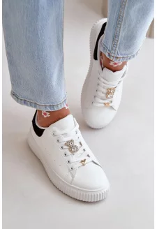 Nízké Tenisky Z Eko Kůže S Odznaky Bílo-Černé Cillione