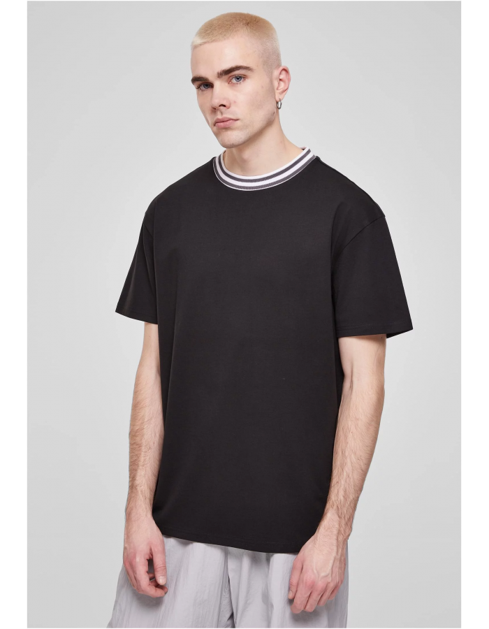 Sportovní pánské tričko s žebrovaným a dvojitým pruhovaným výstřihem je vítaným módním základem. Trendy oversize střih se spadlými rameny a krátkými rukávy jsou součástí urban konceptu. Pánská košile je vyrobena z hladké bavlny.