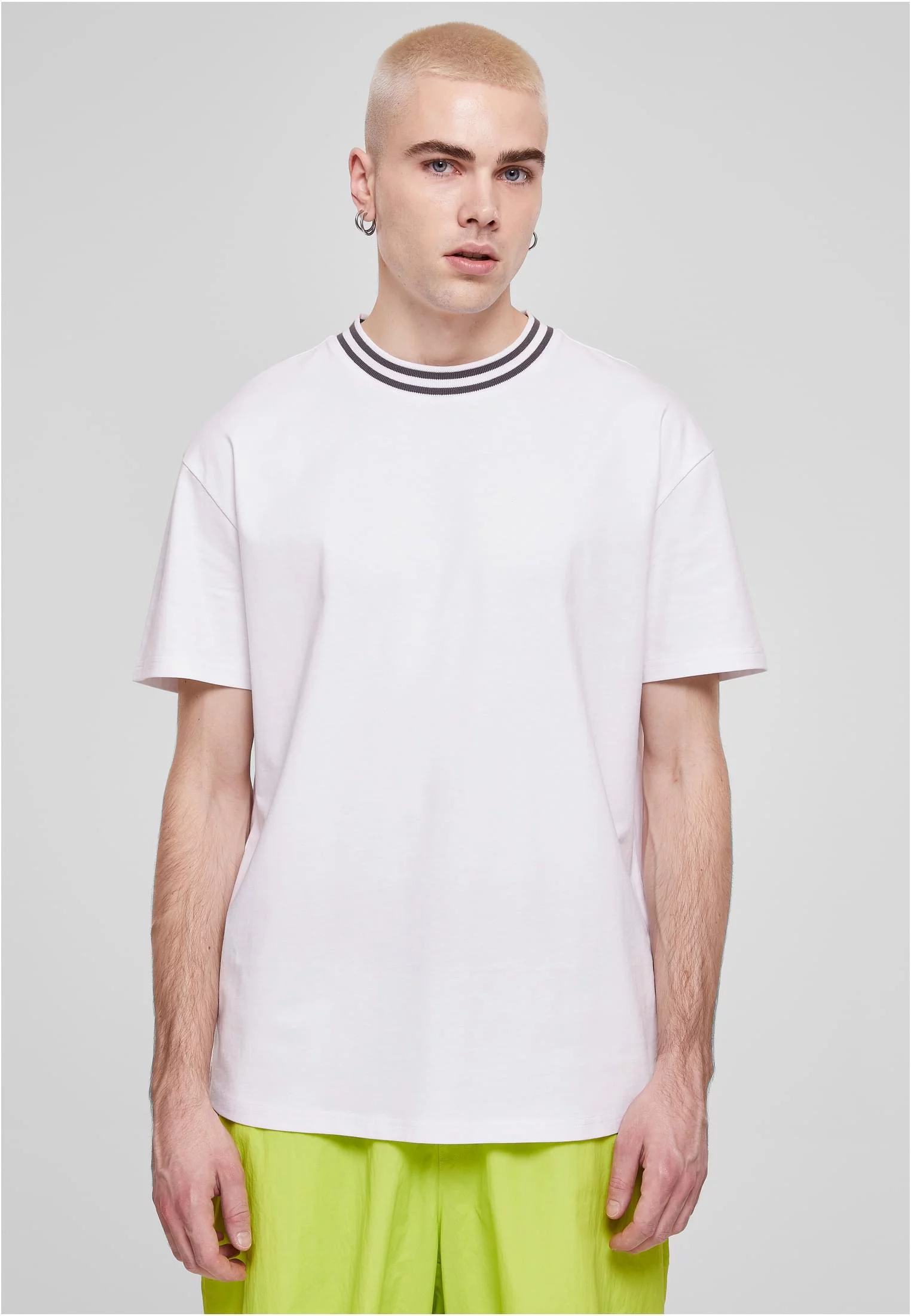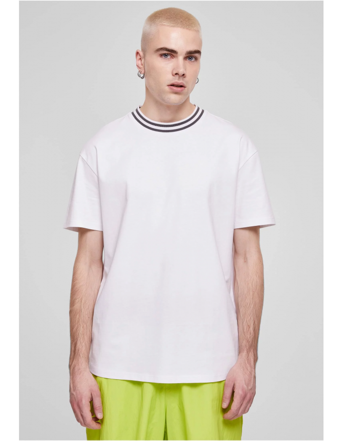 Sportovní pánské tričko s žebrovaným a dvojitým pruhovaným výstřihem je vítaným módním základem. Trendy oversize střih se spadlými rameny a krátkými rukávy jsou součástí urban konceptu. Pánská košile je vyrobena z hladké bavlny.