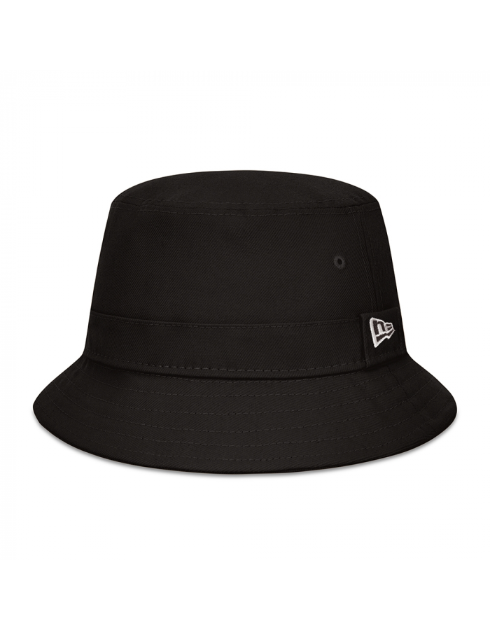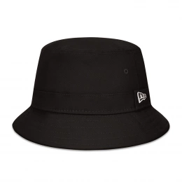 Klobouk New Era Plain Essential Black Bucket Hat. V černém provedení má klobouk neztuženou korunu bez potisku, na jejíž levé straně je vyšitá bílá vlajka New Era. Klobouk je vybaven celokruhovým kšiltem, který poskytuje ochranu před sluncem.