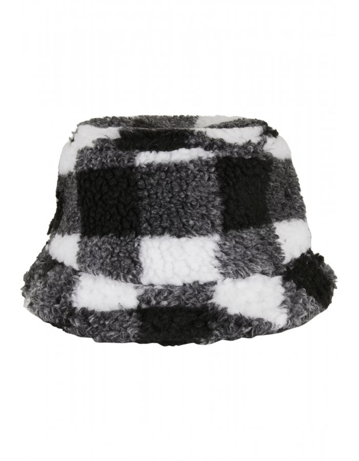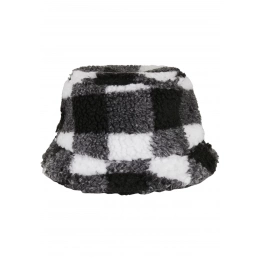Přepracovaný klobouk typu Bucket: tento klobouk se vyznačuje nadýchanou látkou Sherpa a velkým, harmonickým kostkovaným vzorem. Nabízí také šikmý okraj s ozdobnými švy a je univerzální. Materiál klobouku je polyester a akryl.
