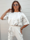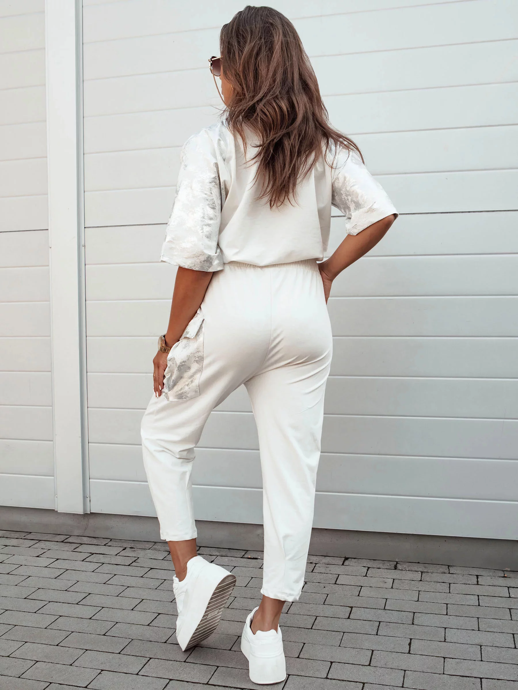Objevte komplet BIRWEKI, který je synonymem nonšalance a vytříbeného stylu. Pohodlné tričko s kulatým výstřihem a krátkými rukávy je ideálním základem pro mnoho outfitů a jedinečný motiv tie dye zdůrazňuje Vaši individualitu. Kalhoty s pohodlným stahovacím pasem zajistí komfort nošení po celý den a dvě praktické kapsy přidají na funkčnosti. Vyberte si tento komplet, abyste vynikli a cítili se výjimečně každý den.