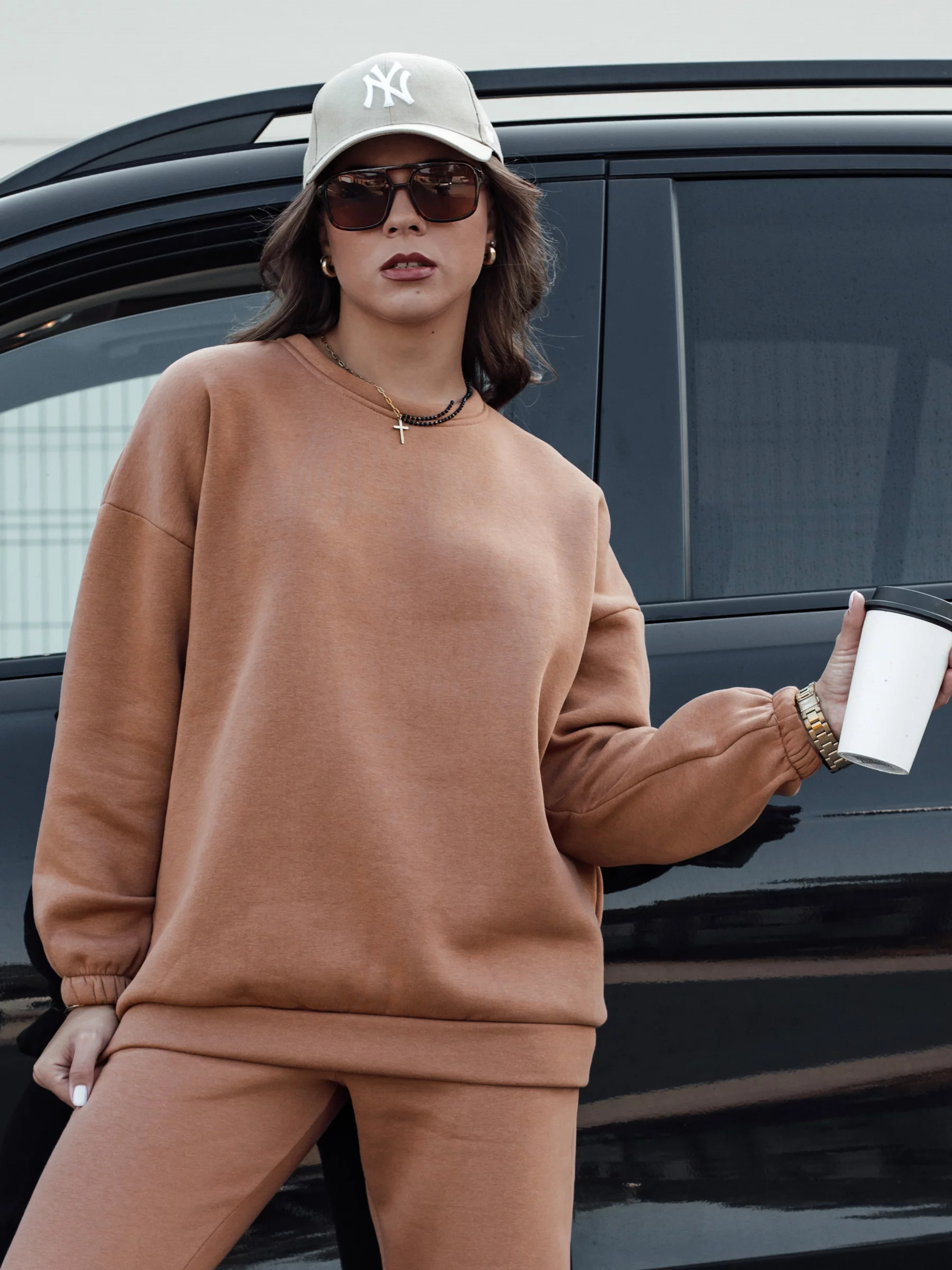 Stylová dámská tepláková souprava ARIELLA PREMIUM je ideální kombinací pohodlí a módy. Díky pečlivému střihu a vysoce kvalitním materiálům se sada skvěle hodí jak na každodenní nošení, tak i na venkovní aktivity. Volný střih zajišťuje volnost pohybu a moderní design zdůrazňuje postavu.