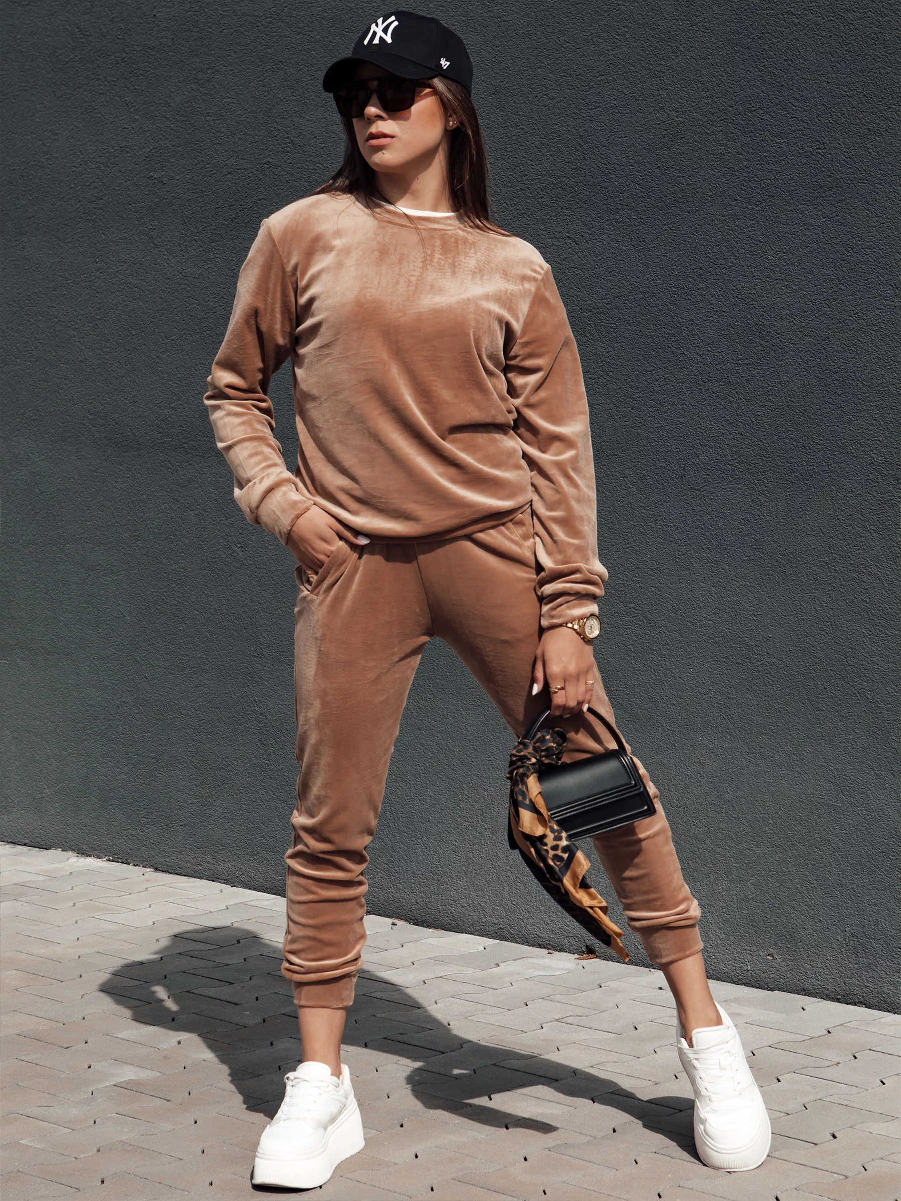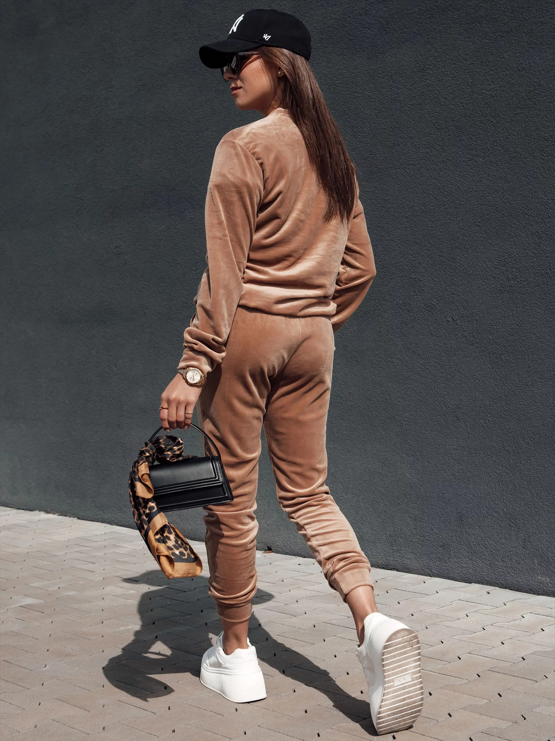 Dámská velurová souprava URBANVELVET světle hnědá Dstreet AY1061 XL