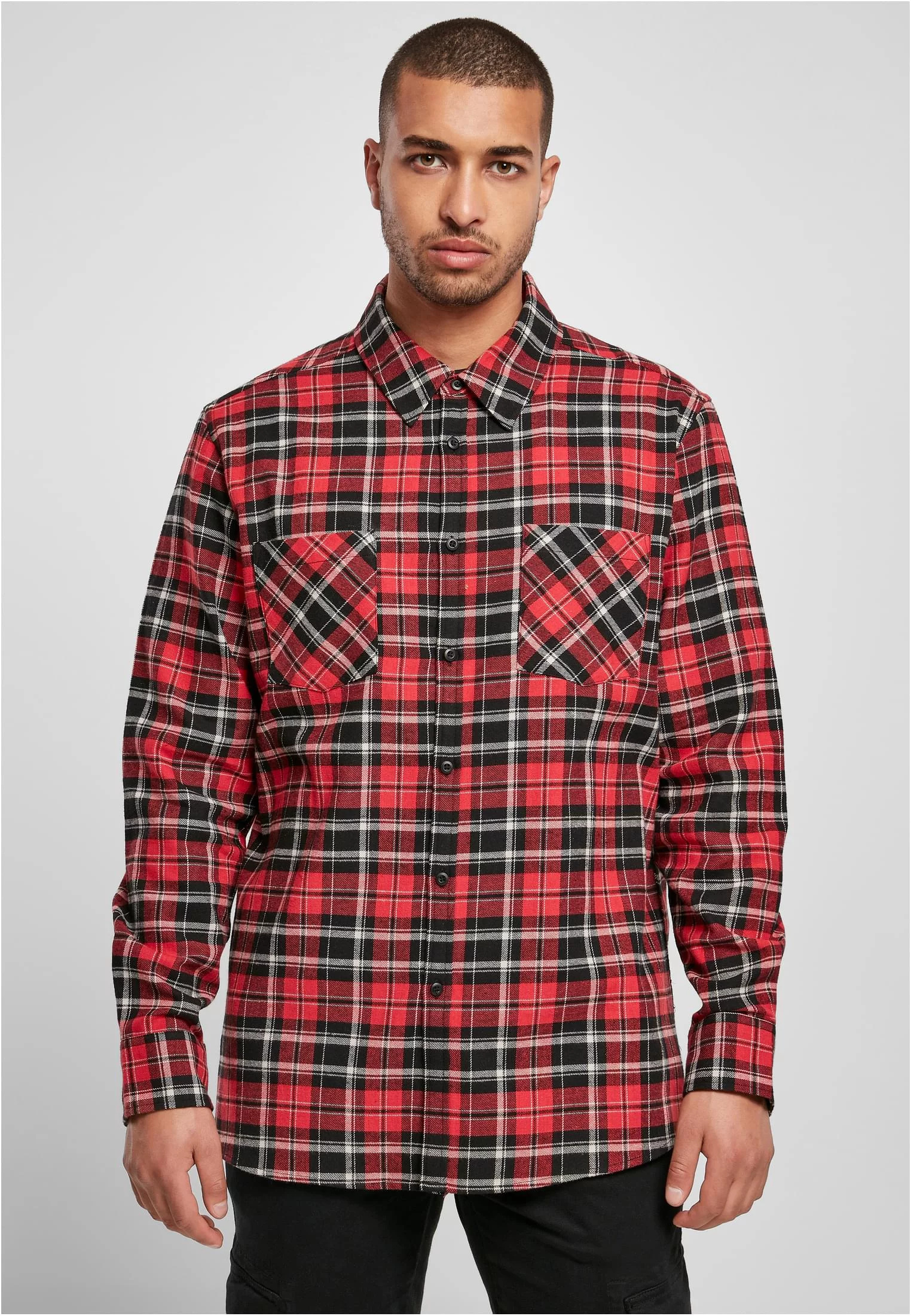 Zavedená dřevorubecká košile pro muže – včetně knoflíkové légy, límce a manžet na rukávech – je pohodovým základem streetwearu. Samozřejmostí jsou dvě náprsní kapsy a souvislý kostkovaný vzor. Kostkovaná košile je ležérního volného střihu a je vyrobena z jemného flanelu.