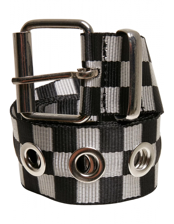 Spolehlivý pásek je autentický městský módní kousek s kostkovaným vzorem, který skvěle doplňují očka a zapínání na hranatou špendlíkovou přezku. Pevný polyesterový materiál je vyztužený kovovým zakončením. Pás je dostupný v délkách 105 a 125 cm.