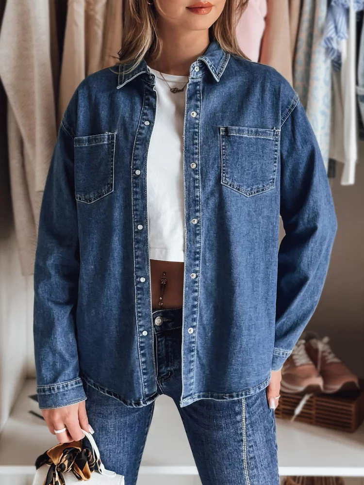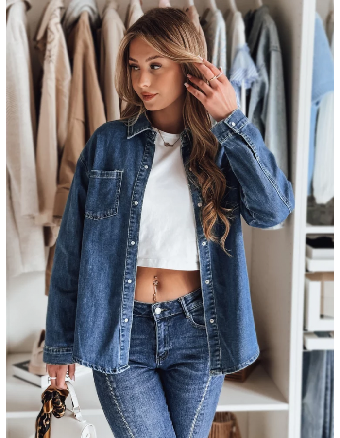 Luźna koszula jeansowa damska oversize, która świetnie sprawdzi się zarówno w casualowych, jak i bardziej stylowych zestawieniach. Posiada wygodne zapięcie na napy oraz ozdobne kieszenie na piersiach. Modne wcięcia po bokach dodają jej lekkości oraz nowoczesnego charakteru. Idealna na każdą okazję.