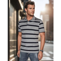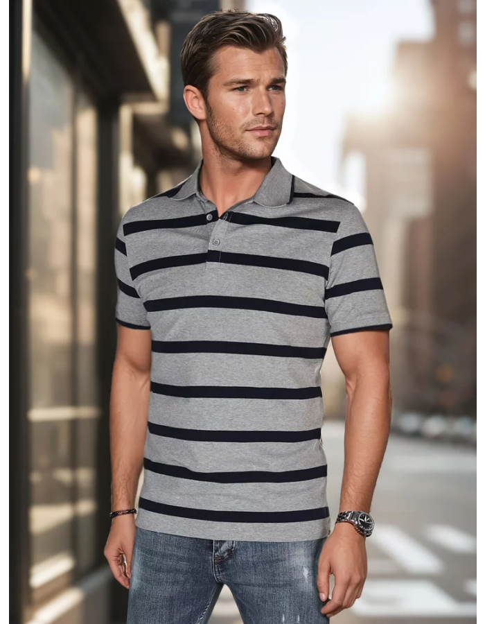 Męska koszulka polo w ponadczasowe paski to świetne połączenie stylu i wygody. Model o klasycznym kroju i kołnierzyku zapinanym na guziki doskonale sprawdza się w codziennych stylizacjach. Miękka tkanina zapewnia komfort noszenia, a uniwersalny wzór świetnie komponuje się z jeansami i sneakersami.