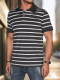 Koszulka polo męska o ponadczasowym fasonie, wykonana z miękkiego i przewiewnego materiału, który doskonale sprawdza się w cieplejsze dni. Klasyczny krój zapewnia komfort noszenia, a poziome paski i zapięcie na guziki dodają całości nowoczesnego stylu. Koszulka idealna na co dzień oraz do miejskich stylizacji. Świetna na sezon wiosenny.