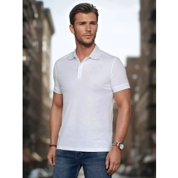 Koszulka polo męska z krótkim rękawem to klasyka w nowoczesnym wydaniu. Model z zapięciem na guziki i subtelną naszywką na piersi dodaje stylu codziennym zestawom. Wykonana z przyjemnego materiału, zapewnia wygodę przez cały dzień. Idealna na spotkania, spacer czy wypad do miasta w ciepłe dni.
