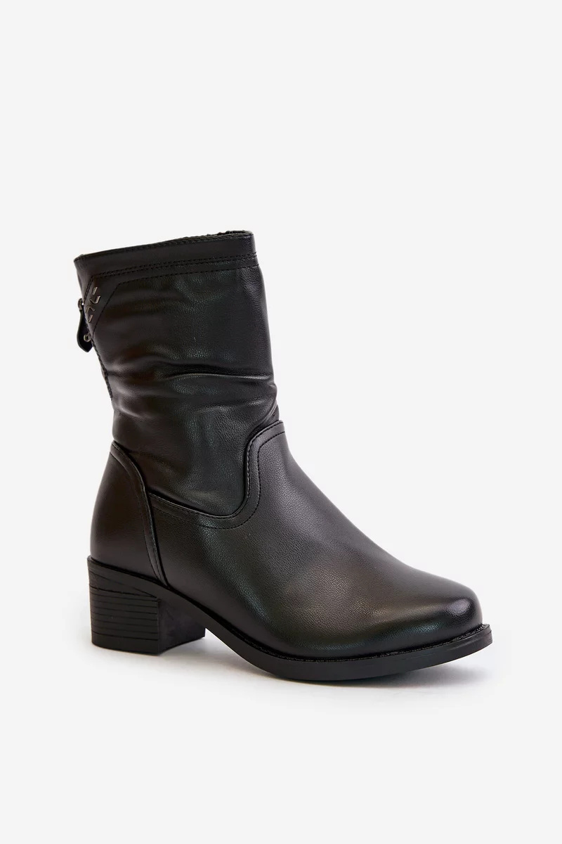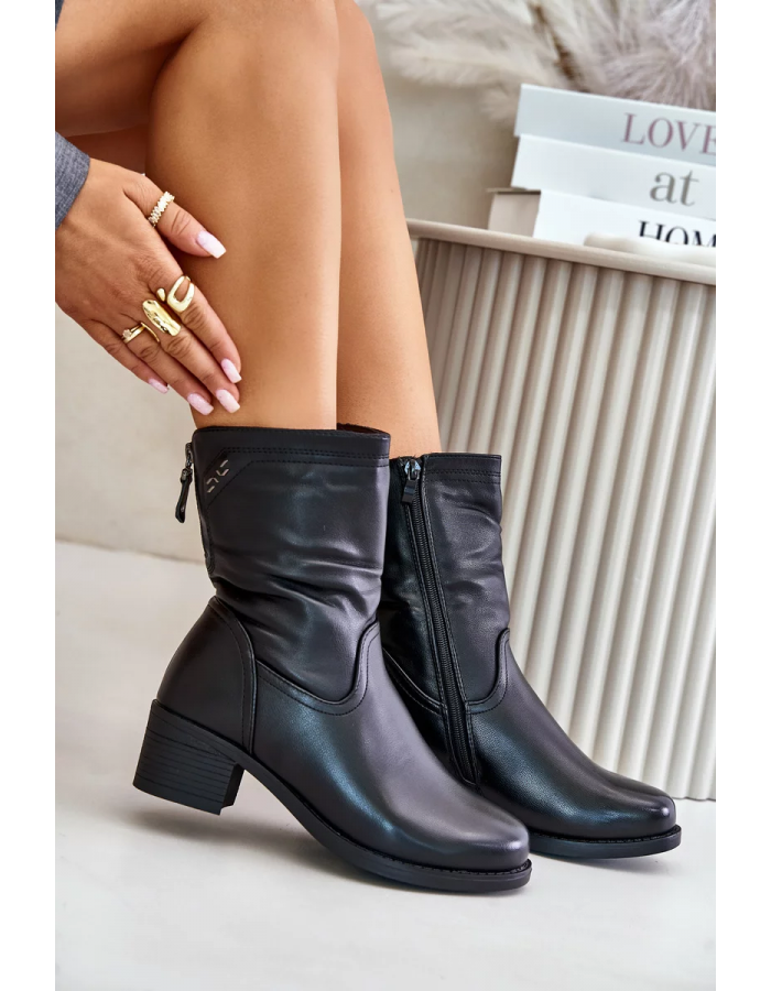 Osazené na nízkém podpatku, zajišťují pohodlí při každodenním nošení. Vnitřek je zateplený silnou kožešinou, která zaručuje teplo a pohodlí i v mrazivých dnech. Svršek je lehce nařasený, což modelu dodává trochu uvolněný, módní vzhled. Díky zapínání na zip je obouvání a zouvání bot rychlé a snadné. Při výběru velikosti se prosím řiďte tabulkou velikostí.