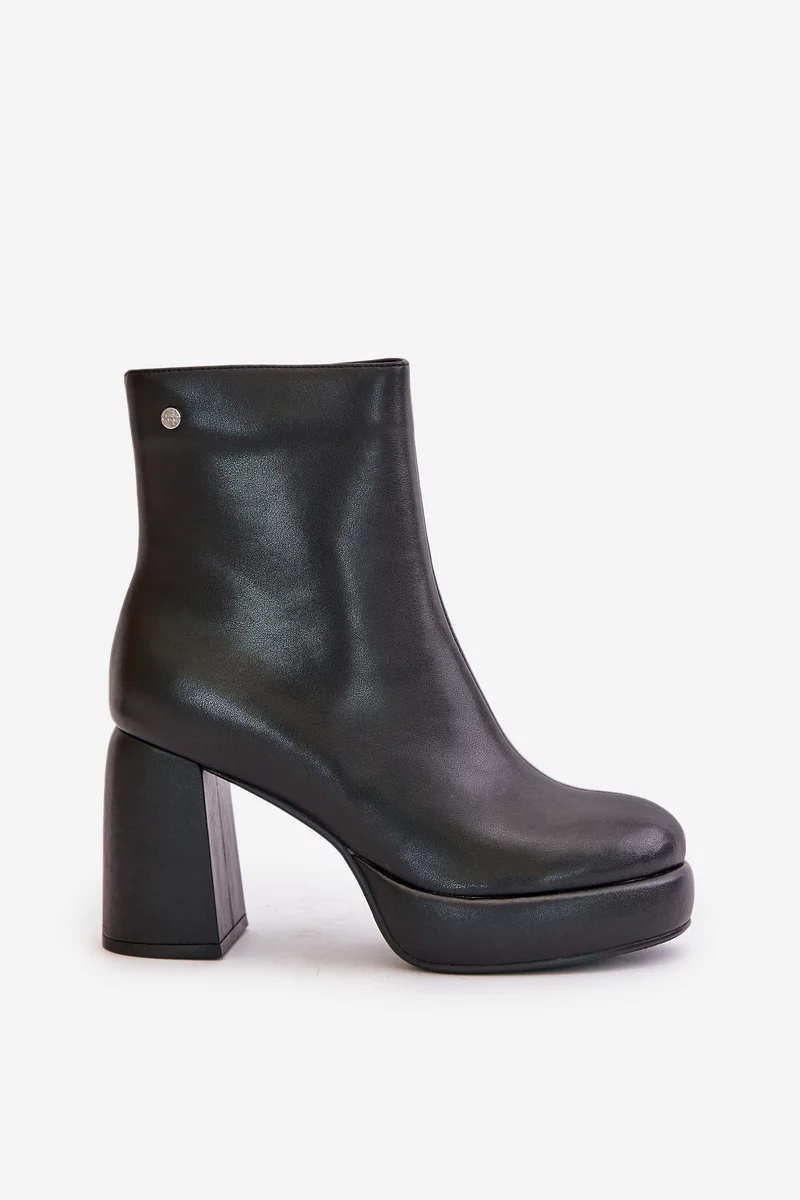 Osazené na stabilním sloupkovém podpatku s platformou vpředu, zajišťují pohodlí při nošení. Model zapínaný na zámek, s jemným zateplením obuvnickou dekou, spojuje stylový vzhled s funkčností, ideální na každodenní nošení i speciální příležitosti. Při výběru velikosti se prosím řiďte tabulkou velikostí