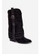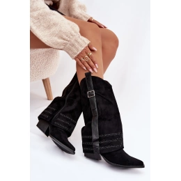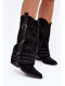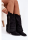 Dámské kozačky Camilora v černém provedení kombinují výrazný western styl s moderním elegantním nádechem. Detailní ozdoba a kovová spona dodávají botám výrazný a módní charakter. Stabilní podpatek (sloupek) zajišťuje pohodlnou a stabilní chůzi, zatímco vyšší svršek poskytuje podporu a stylový vzhled vhodný se sukněmi, šaty i úzkými kalhotami.