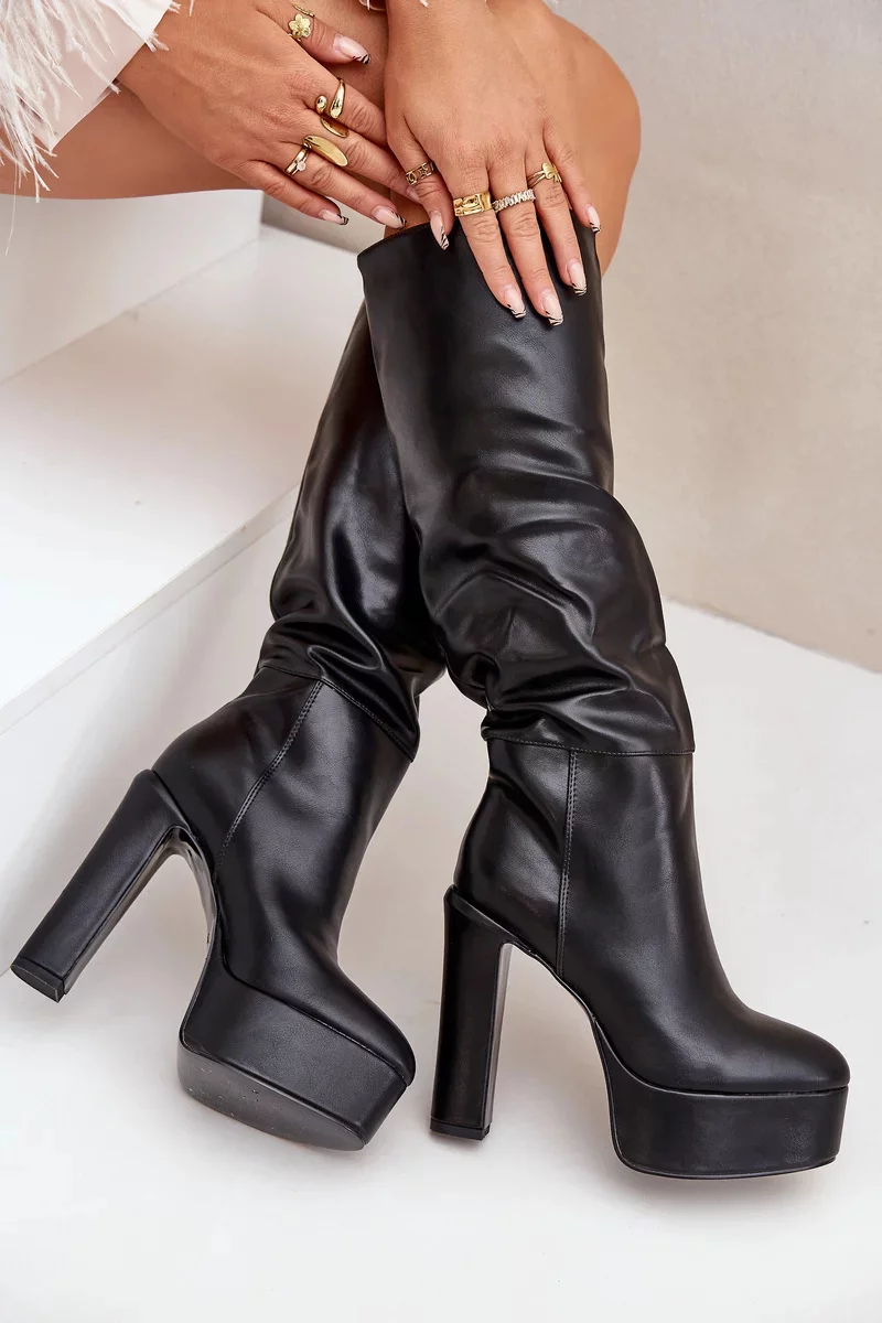 Nasouvací dámské kozačky vyrobené z eko semiše. Zabudované na masivní platformě a stabilním podpatku typu sloupek, spojují styl s pohodlím. Vnitřek zateplený obuvnickou dekou zajišťuje teplo v chladných dnech. Svršek s jemným řasením dodává eleganci a jemný charakter. Ideální pro každodenní i více stylové zimní outfity. Při výběru velikosti se prosím řiďte tabulkou velikostí.