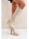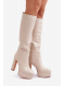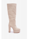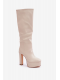 Kozačky na podpatku a platformě z eko kůže světle béžové Felilorn 38