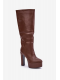 Nasouvací dámské kozačky vyrobené z eko semiše. Zabudované na masivní platformě a stabilním podpatku typu sloupek, spojují styl s pohodlím. Vnitřek zateplený obuvnickou dekou zajišťuje teplo v chladných dnech. Svršek s jemným řasením dodává eleganci a jemný charakter. Ideální pro každodenní i více stylové zimní outfity. Při výběru velikosti se prosím řiďte tabulkou velikostí.