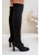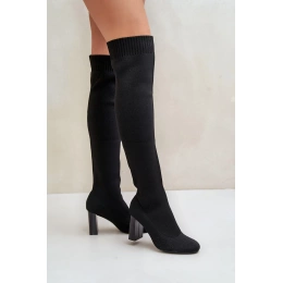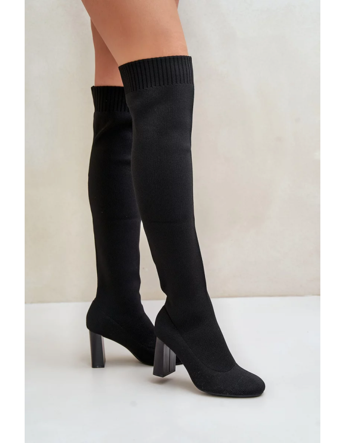 Kozačky s ponožkovým svrškem nad kolena na podpatku černé Esanira 38