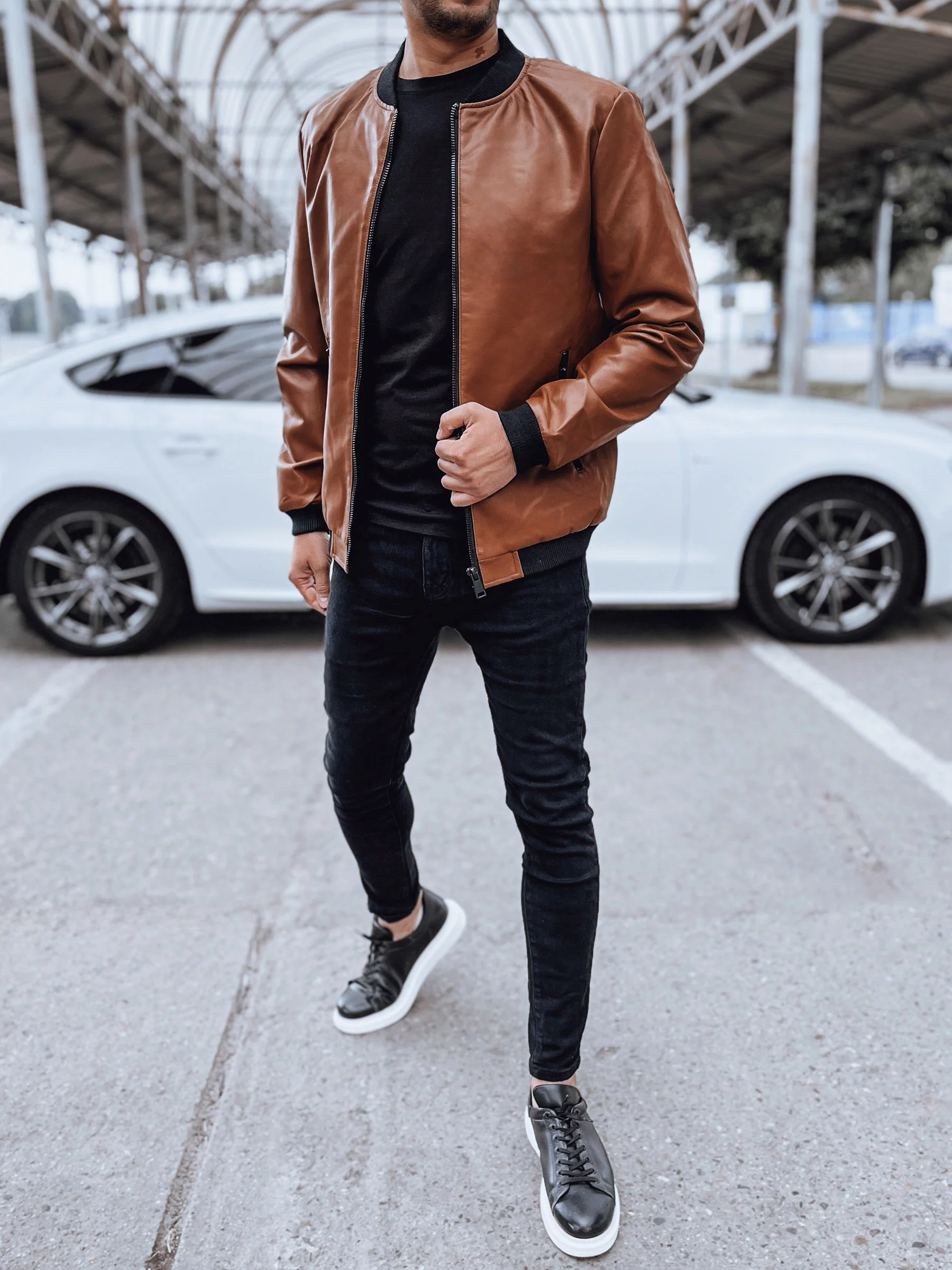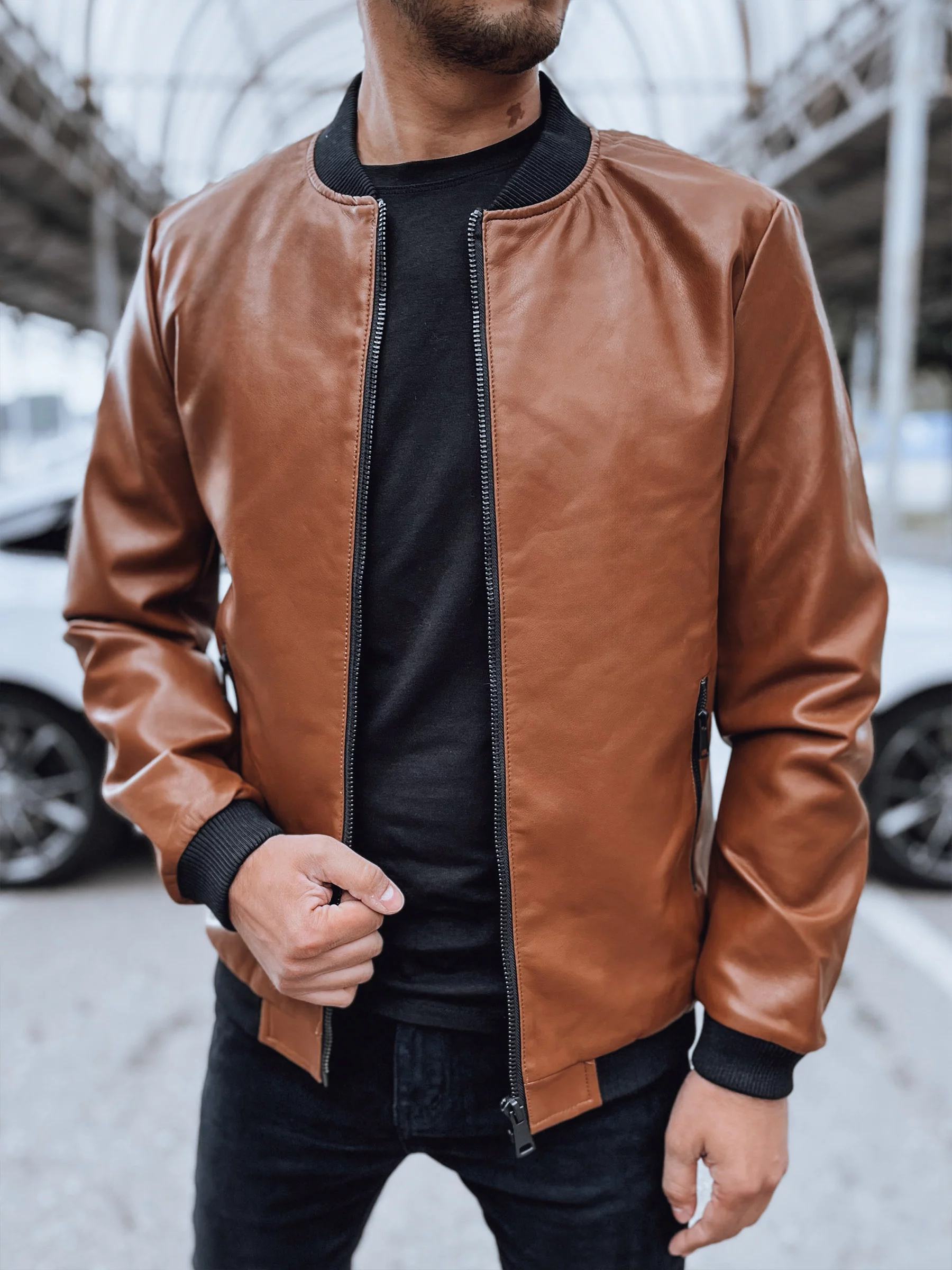 Stylová pánská kožená bunda typu bomber, spojující klasiku s moderností.