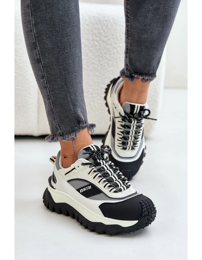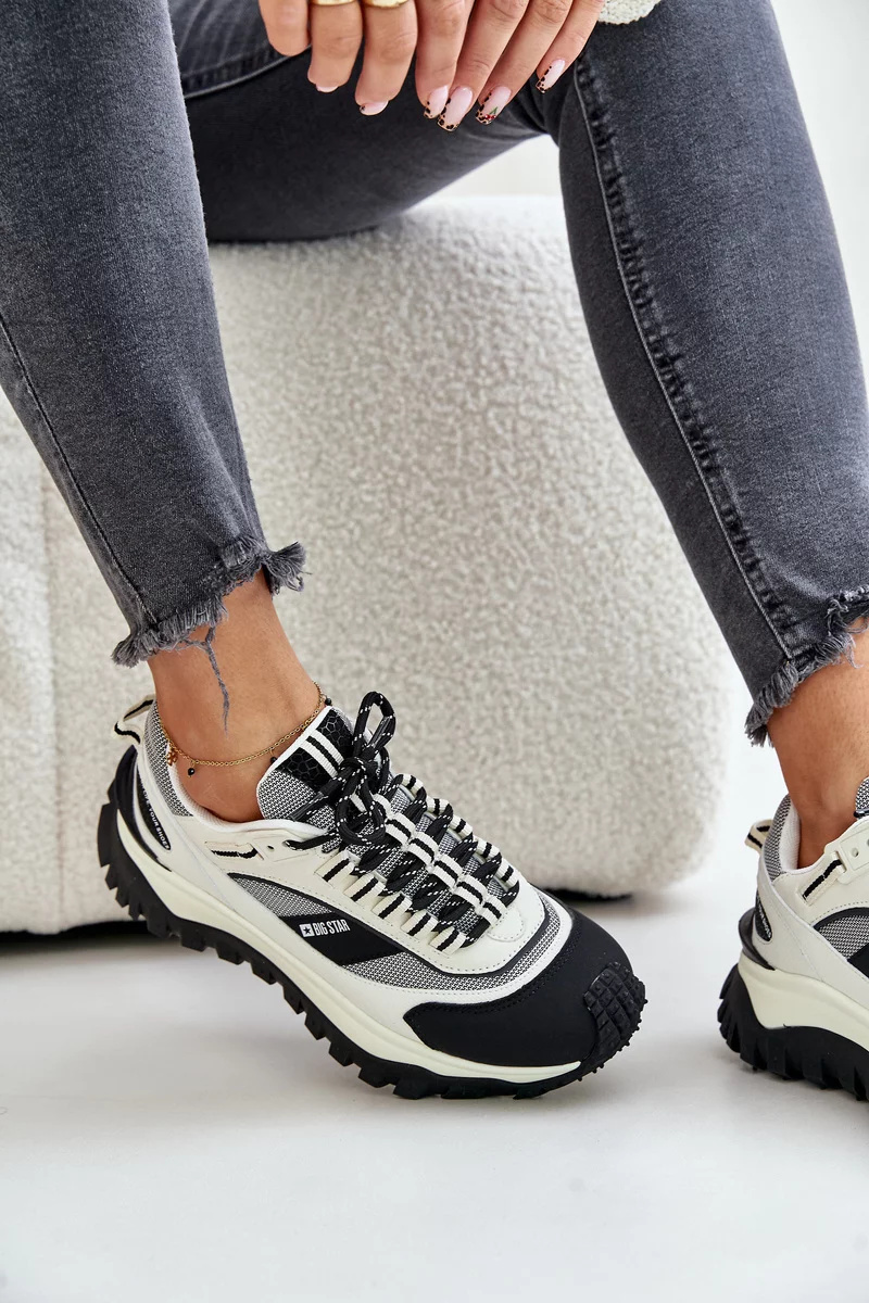 Stylové tenisky od značky Big Star. Vyrobeno z kombinace přírodní kůže a textilního materiálu. Osazeno na módní platformě. Vložka HI-POLLY SYSTEM pochází z recyklace, je odolná proti oděru a deformacím, absorbuje vlhkost a tlumí nárazy. Tento model spojuje moderní design s pohodlím, ideální pro každodenní stylizace! Při výběru velikosti se prosím řiďte tabulkou velikostí.