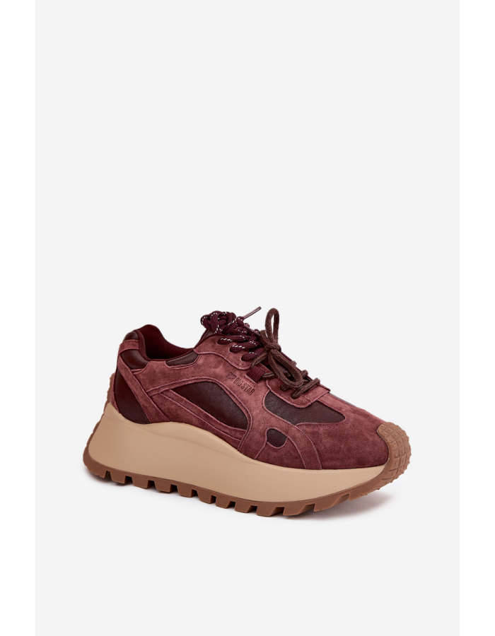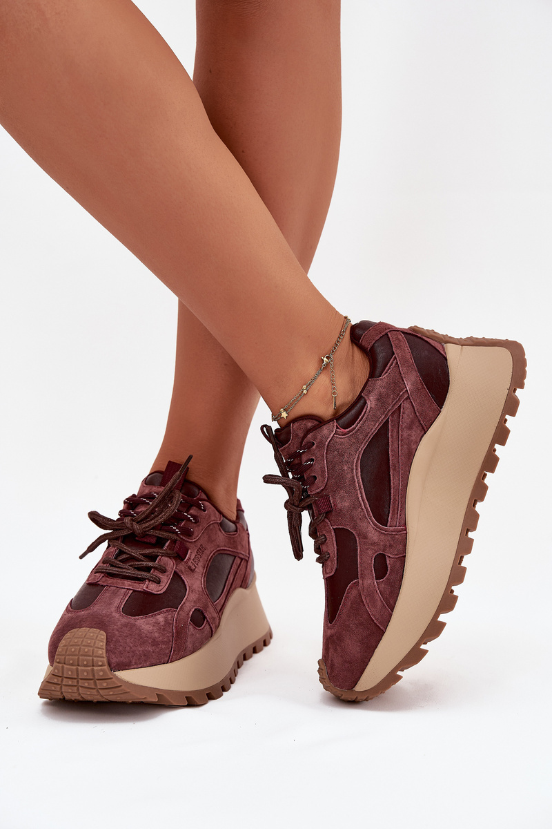 Stylové dámské tenisky Big Star z kvalitní kůže na platformě v elegantní bordó barvě. Technologie HI-POLY SYSTEM zajišťuje optimální odpružení a podporu chodidla, což poskytuje pohodlí při každodenním nošení.